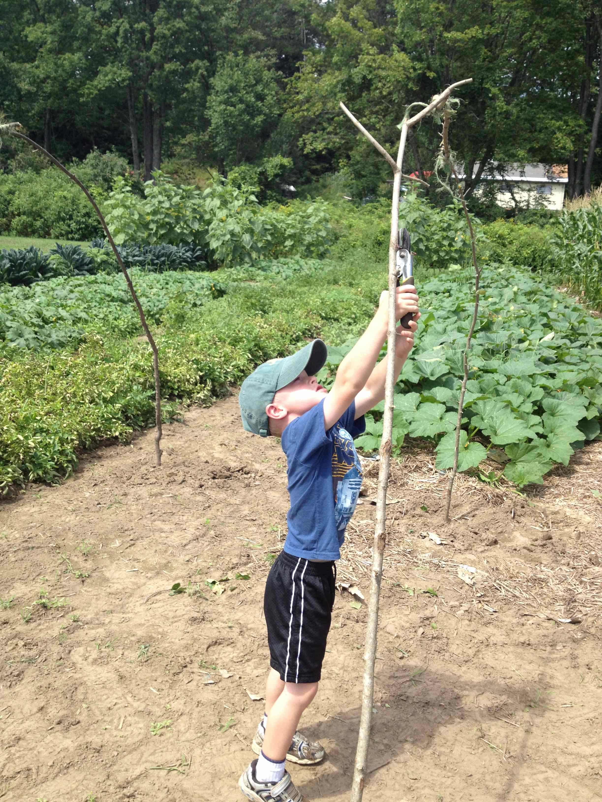 Yesterday a couple of Westminster Moms and their children helped to build a new addition to our garden. We now have an arched structure made of saplings, baling twine and garden love. Emily Lisai, parent and former teacher at our school brought saplings cut from home that she managed to cram into her car along with kids and car seats. Declan was back for more sawing. Andrea Carlson and her two children, Bayley and Maya Sbardellati joined to measure and cut the saplings to the right size.