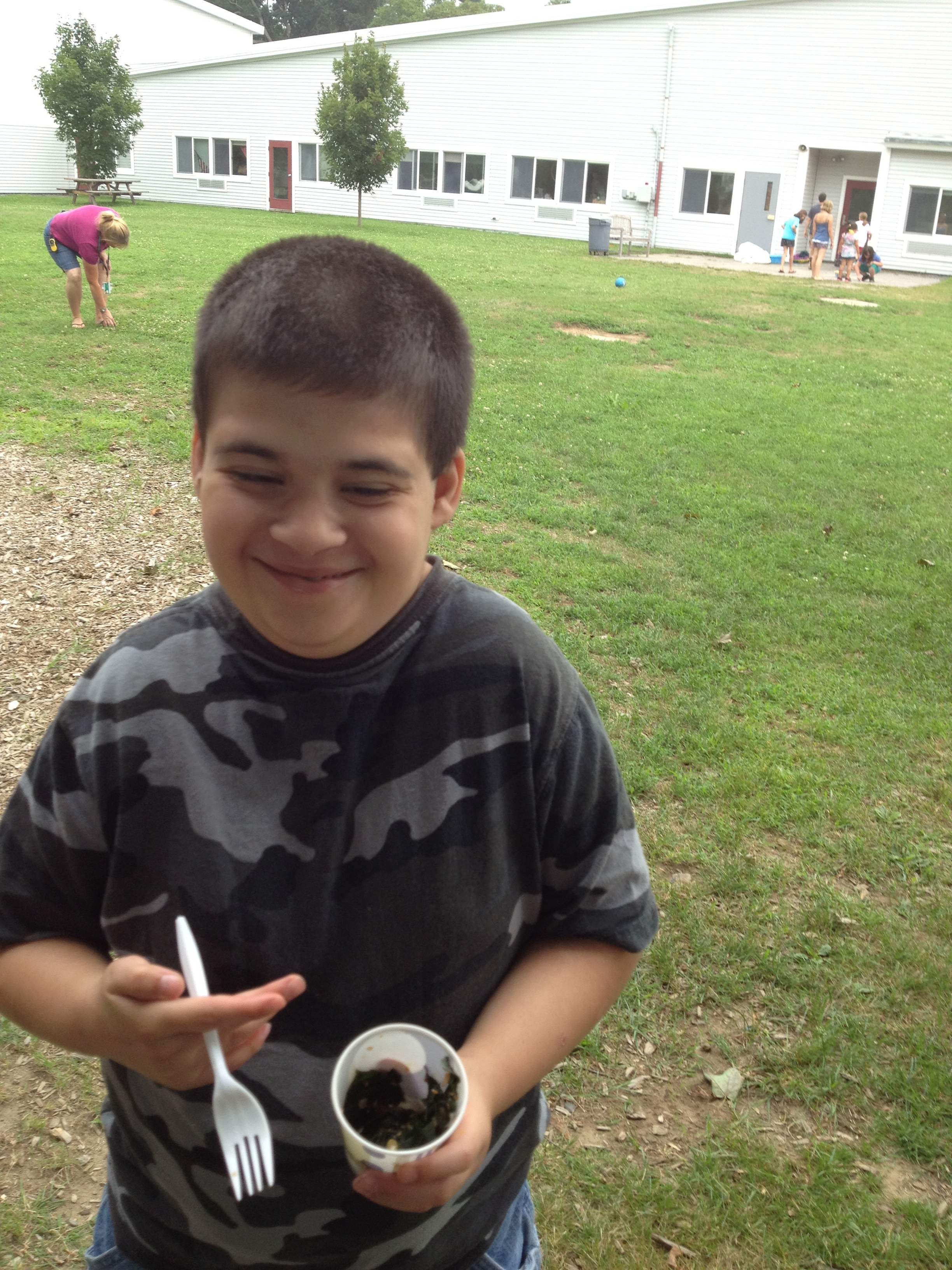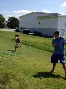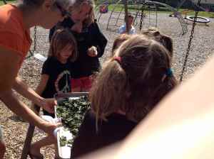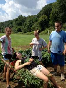We couldn’t have put our shade frame together without a generous donation of baling twine from Jason Goodell at the Goodell Dairy Farm. What a great community of helpful parents! Jason also gave us a tarp that lets air through while blocking the sun’s rays.