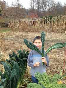 We found out that although kale will continue to produce even after the snow falls, it needs to be continually harvested (from the bottom up) in October/November.