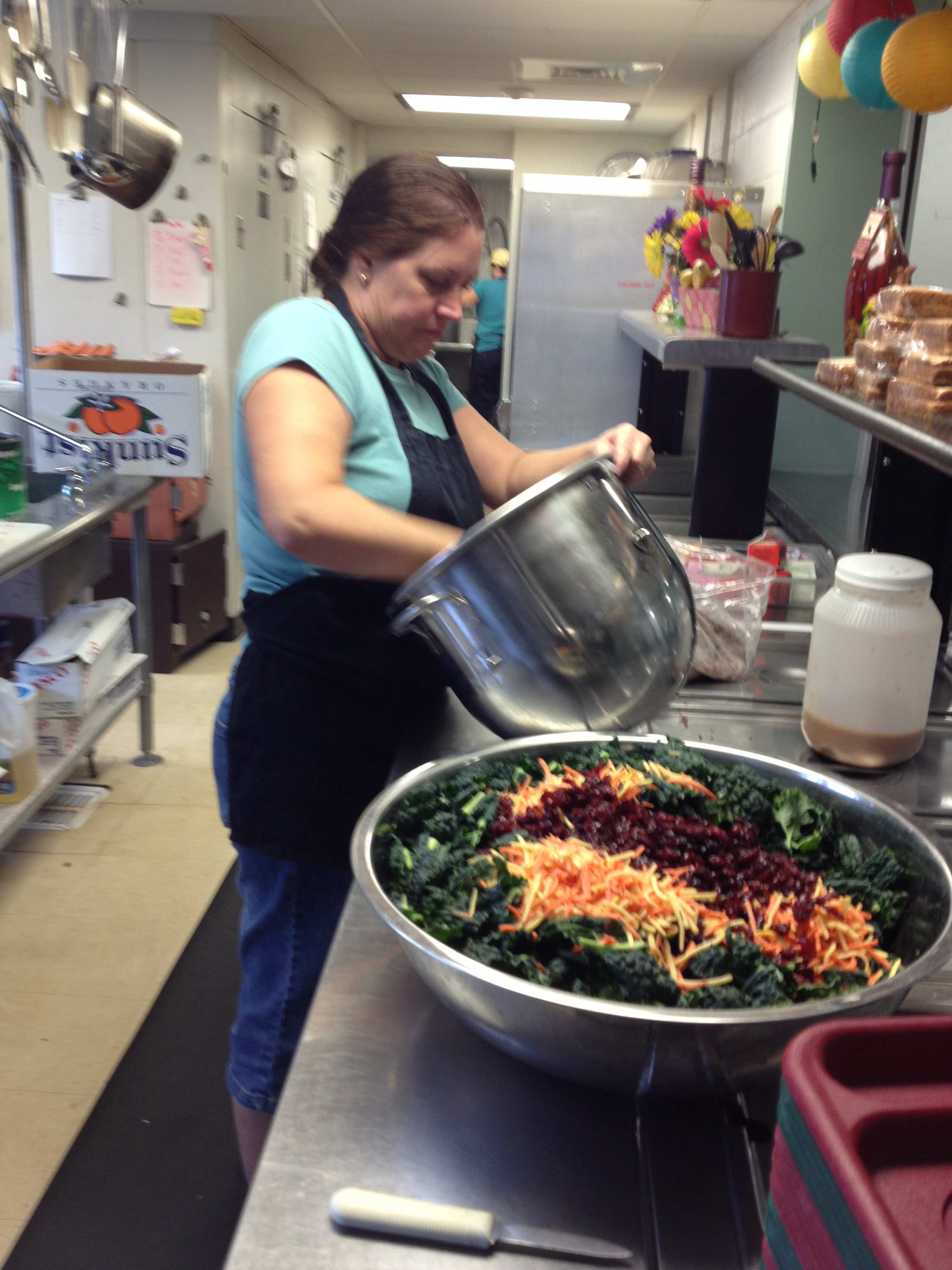 Our chef, Kim Kinney, is using the kale we harvest for her in yummy lunchtime salads.