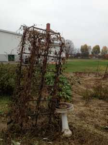 I thought a few photos of our arbor in summer and after the first frost would help to illustrate how a garden can encourage children to consider change over time.