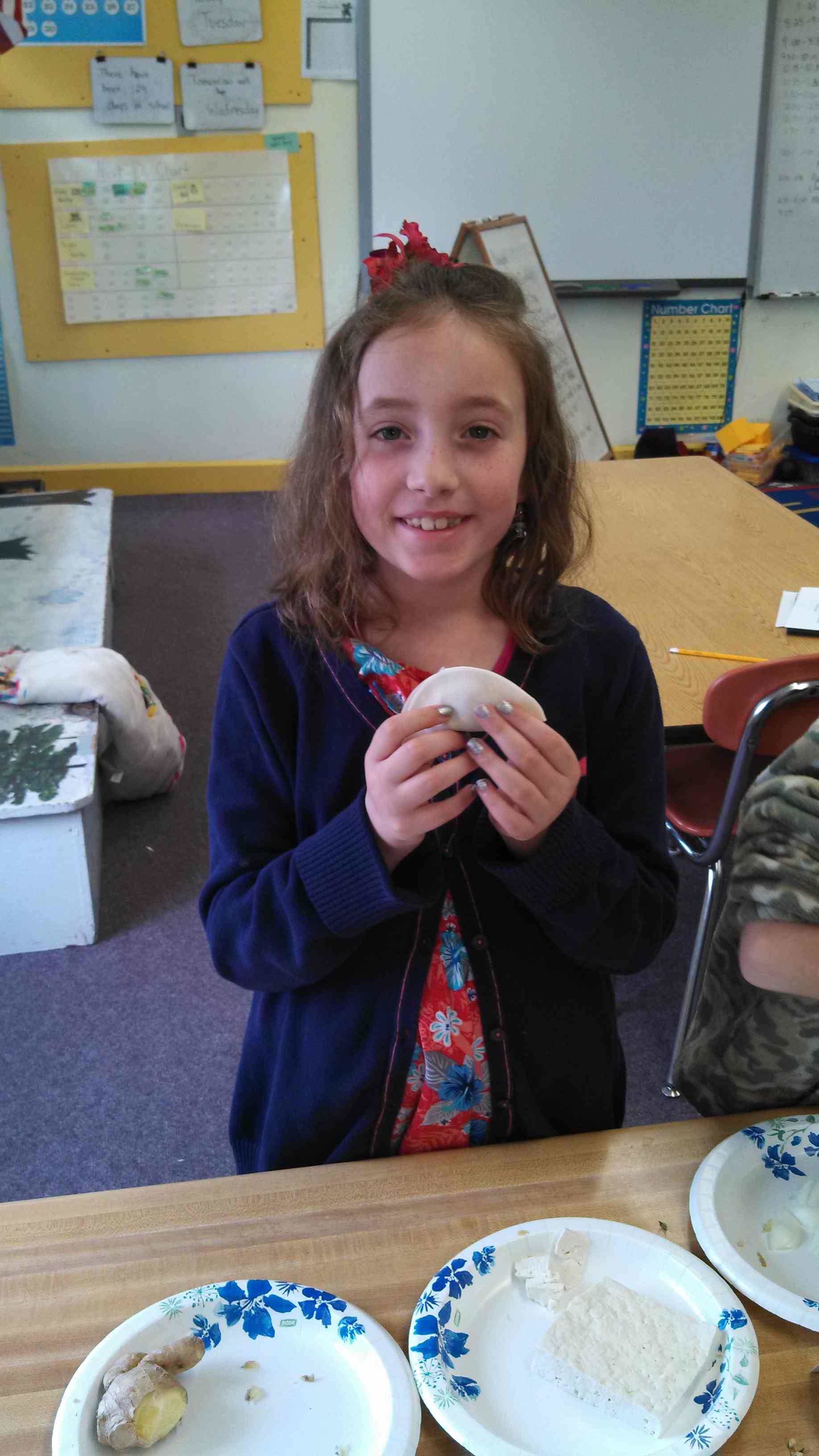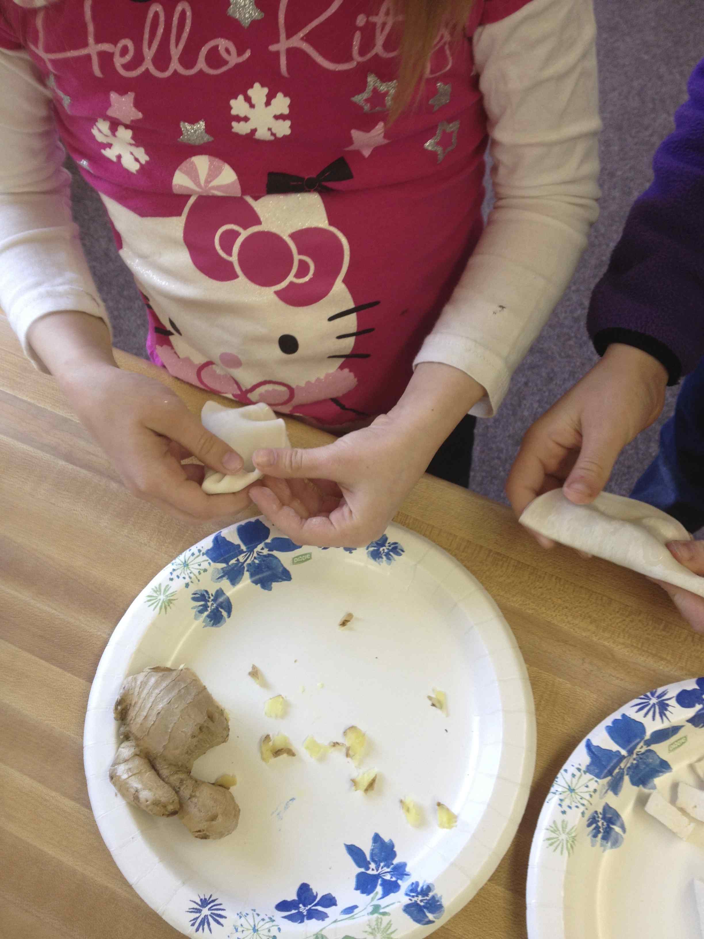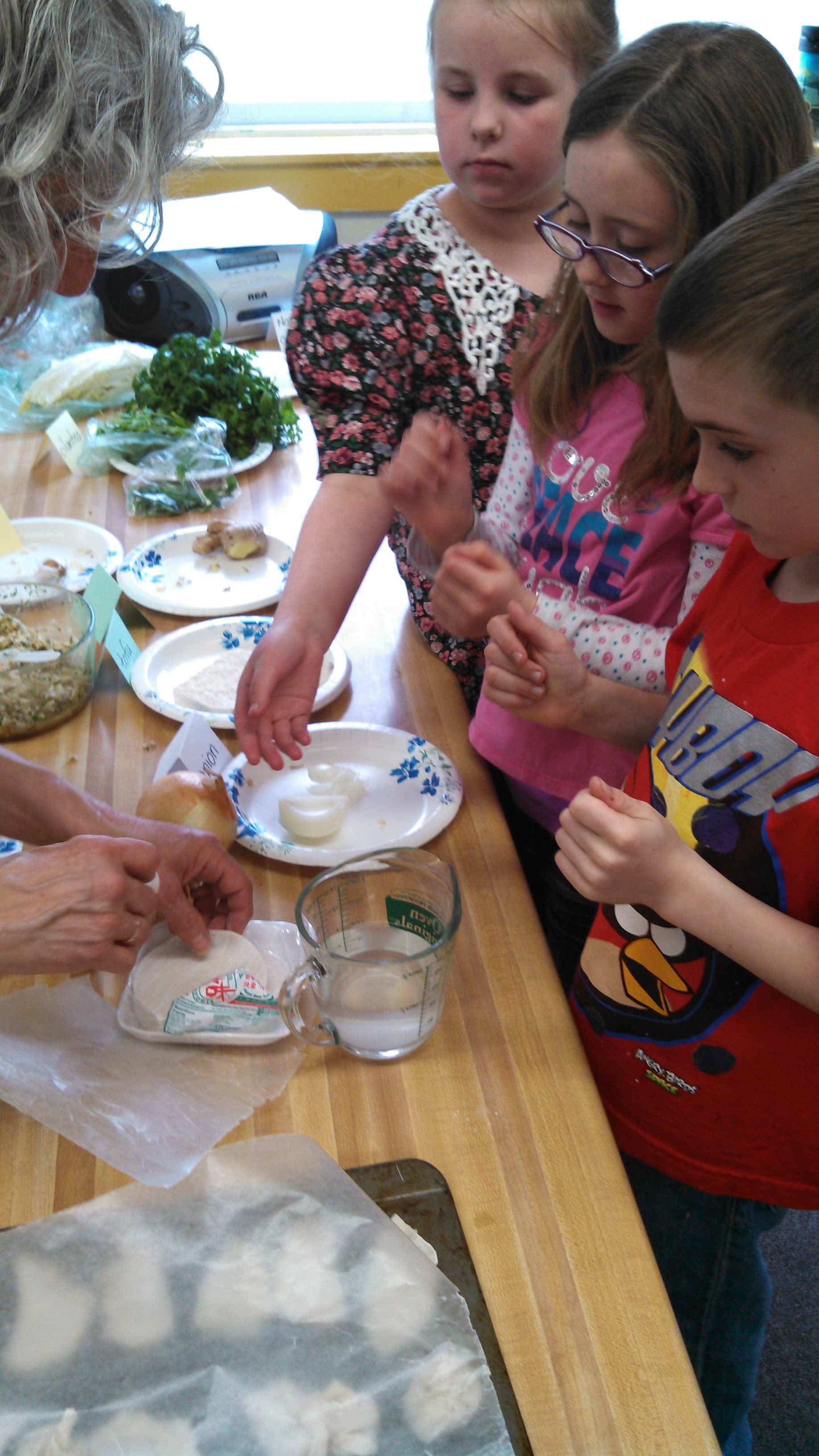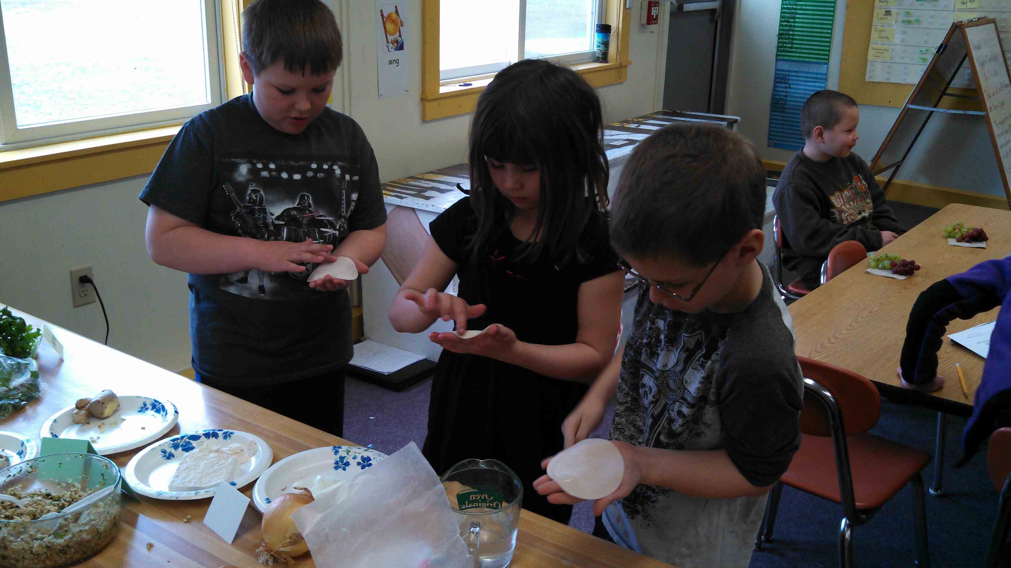 Students observed, sketched and taste tested the fresh ingredients that had been finely diced and combined to make the filling. They then graded ingredients by flavor. Reactions were mixed, but most students were game for learning about tastes foreign to their palates. I am a firm believer that food preparation is one of the best ways to gain an early appreciation for diversity.
