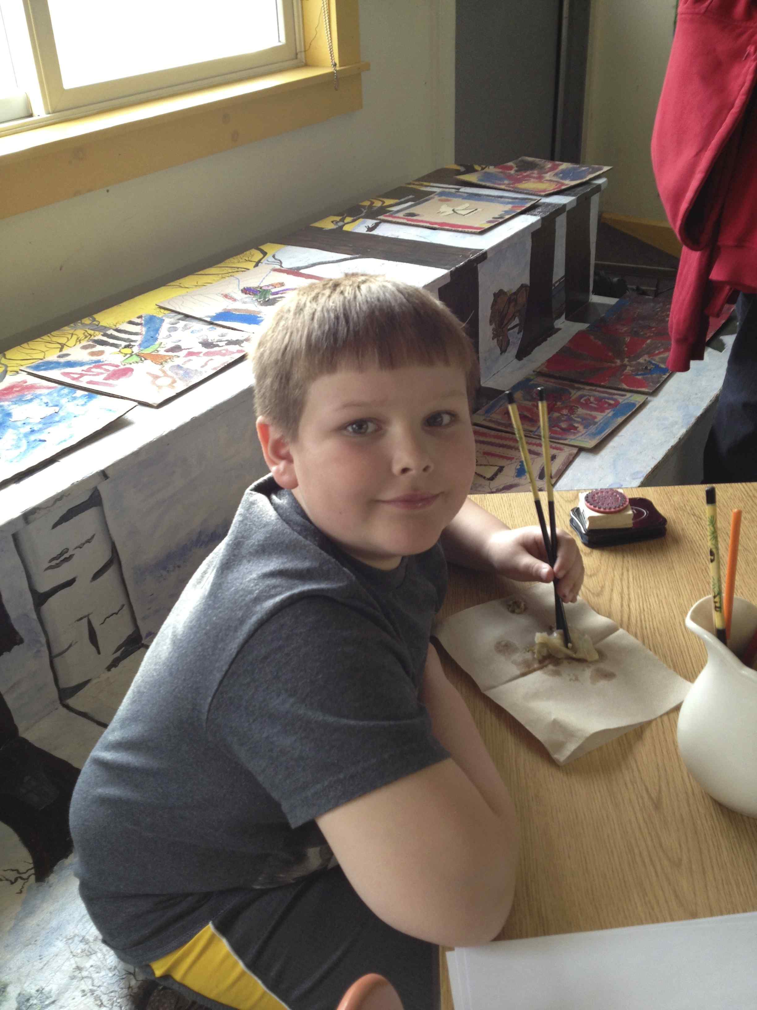 The third graders were working hard to finish their research reports on Nepal, beloved country of their teacher, Ian Levy. He spent a year living there before coming to Westminster. I learned a lot just peering over their shoulders as the students were working. There was an incredible slideshow of his adventures running on the smart board screen as the students worked.