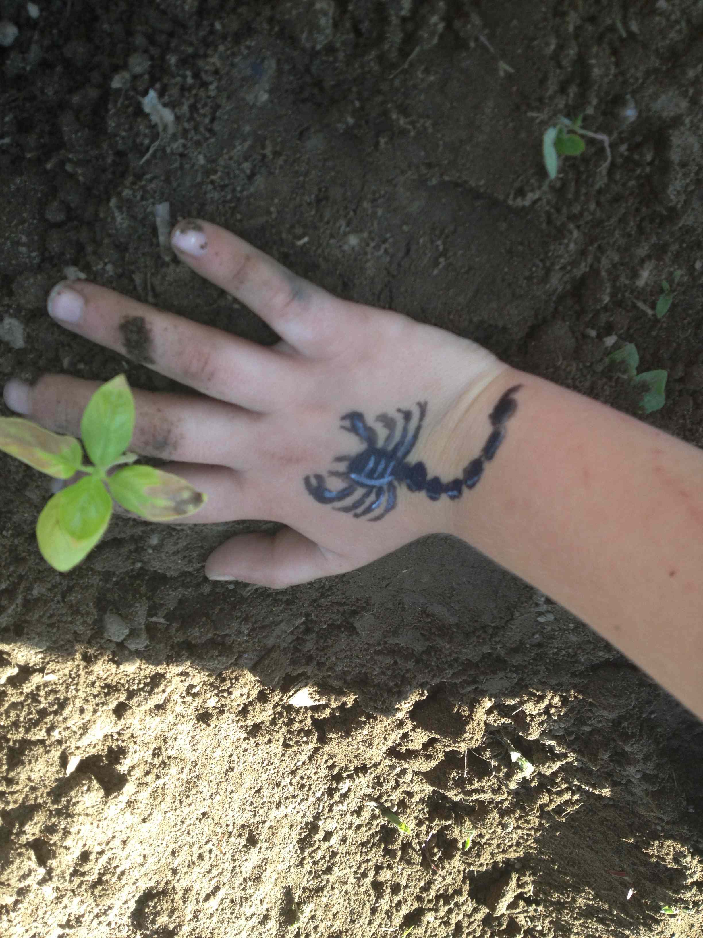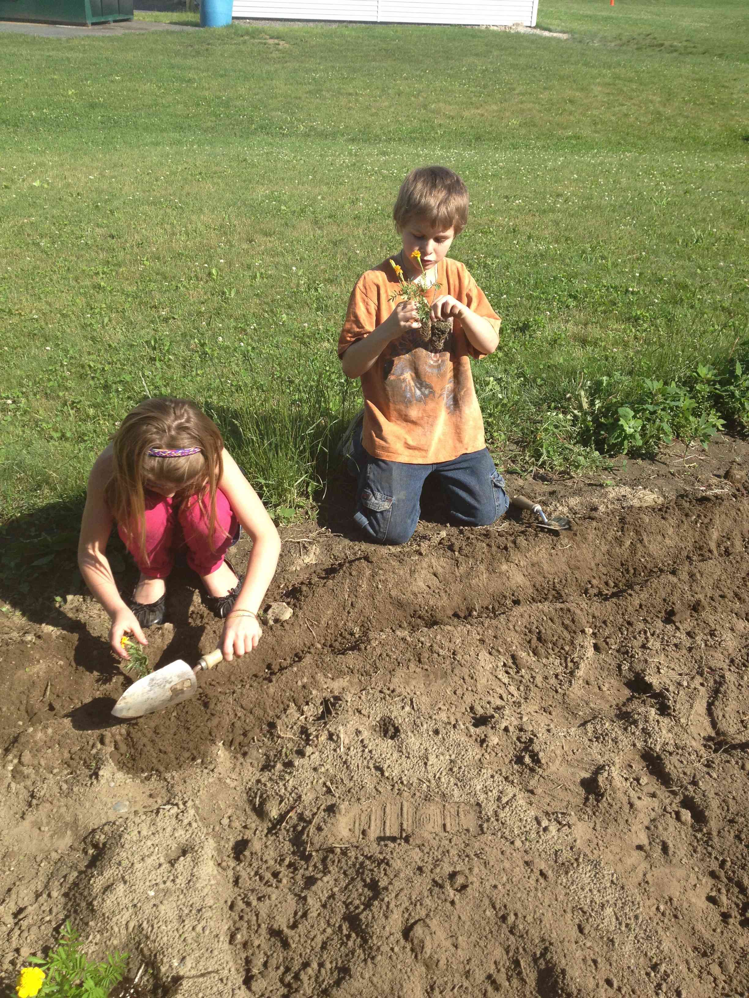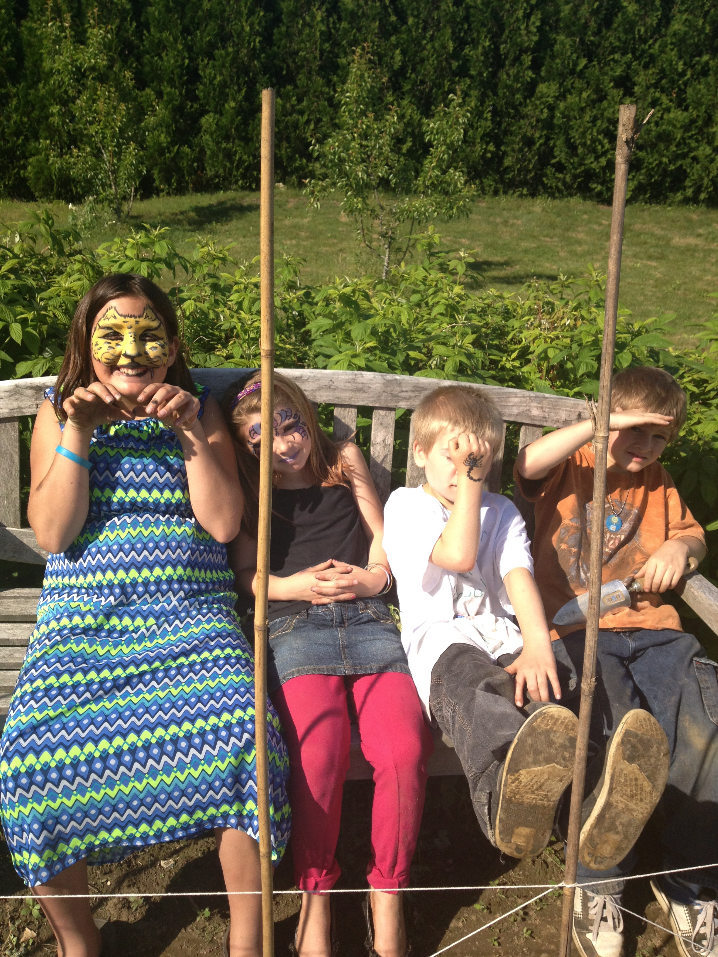After school on Field Day last June, a crew of students came out to the garden for some final planting before summer vacation. They proudly showed off their face and hand paintings. Marigolds were planted around the garden border and a few kitchen garden seeds (carrots, beets and beans) were planted for the summer camp in two weeks.