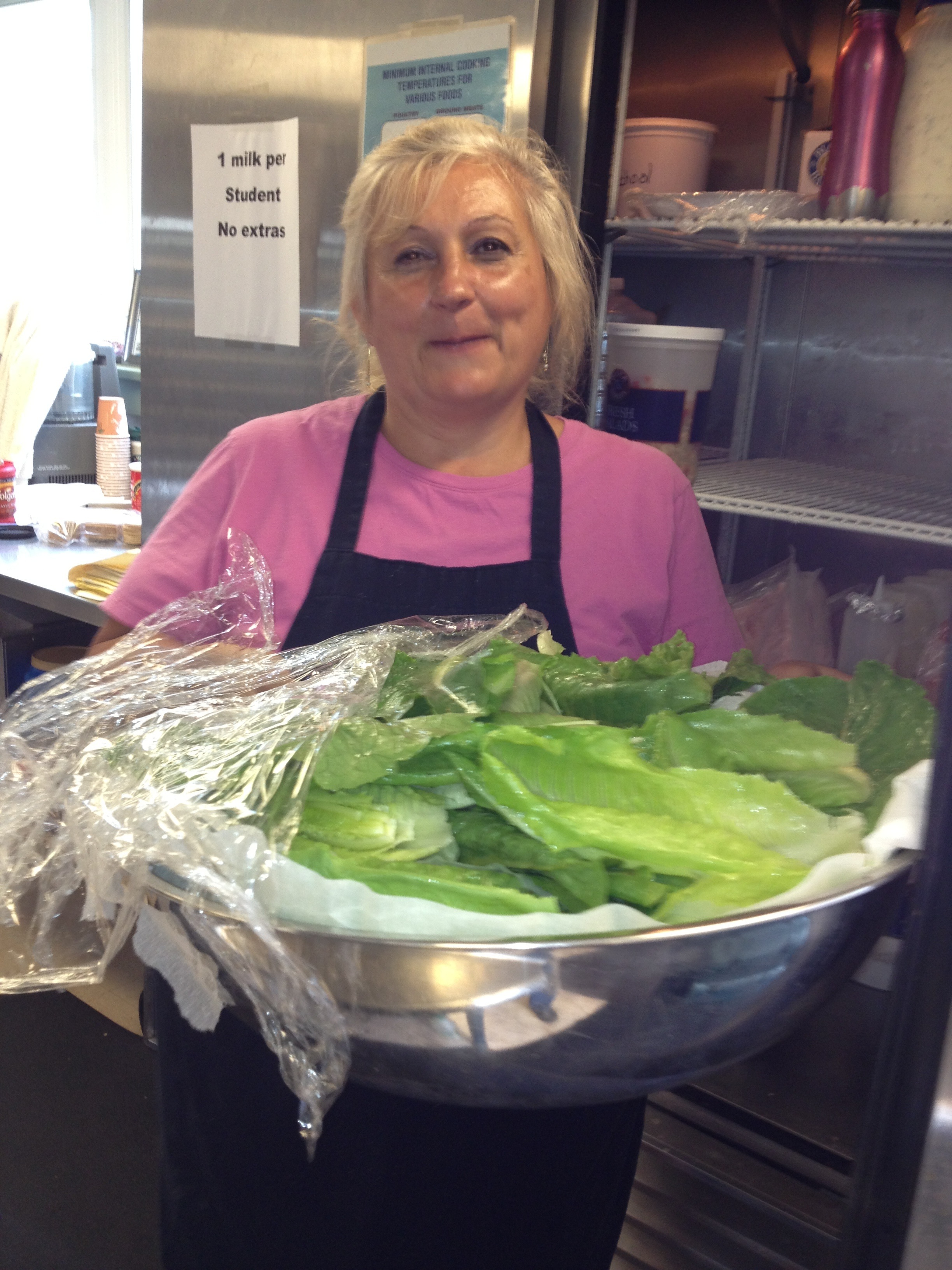 It’s official! We are now helping out with Summer School program salad right from our garden. The first lettuces, planted last June have made it to the lunch tables at school. Doesn’t Mary look happy to have this beautiful lettuce, grown by our students?