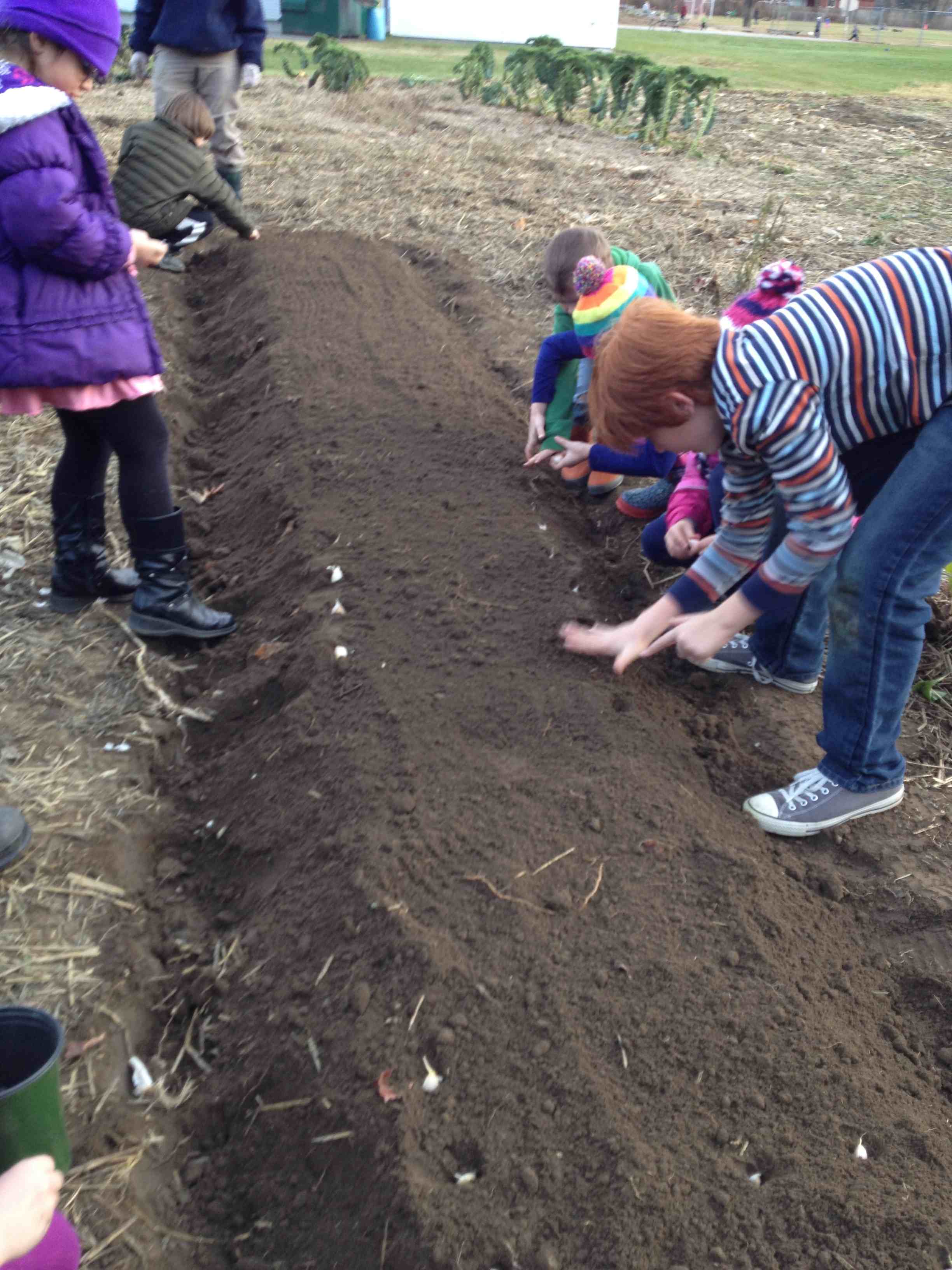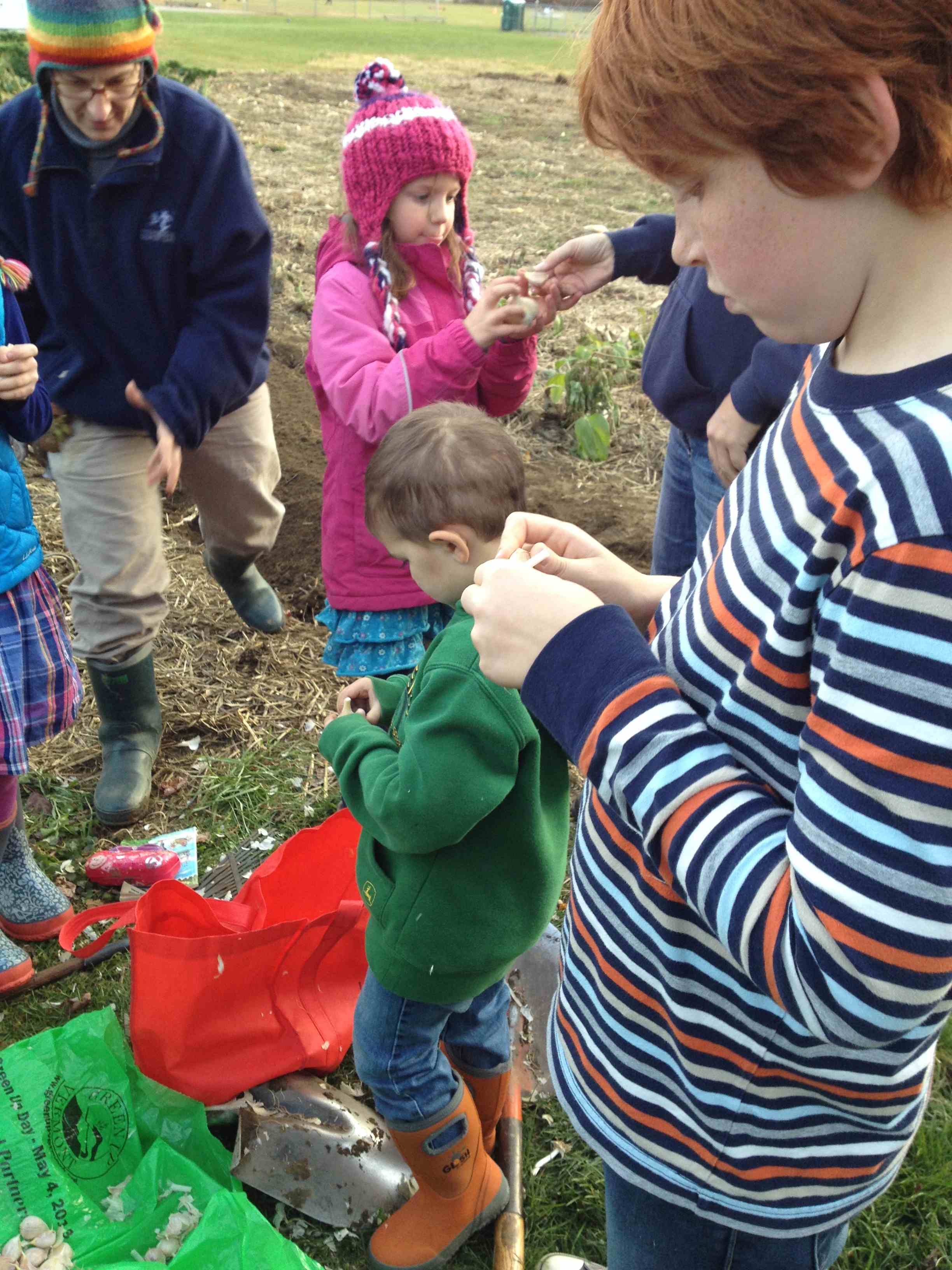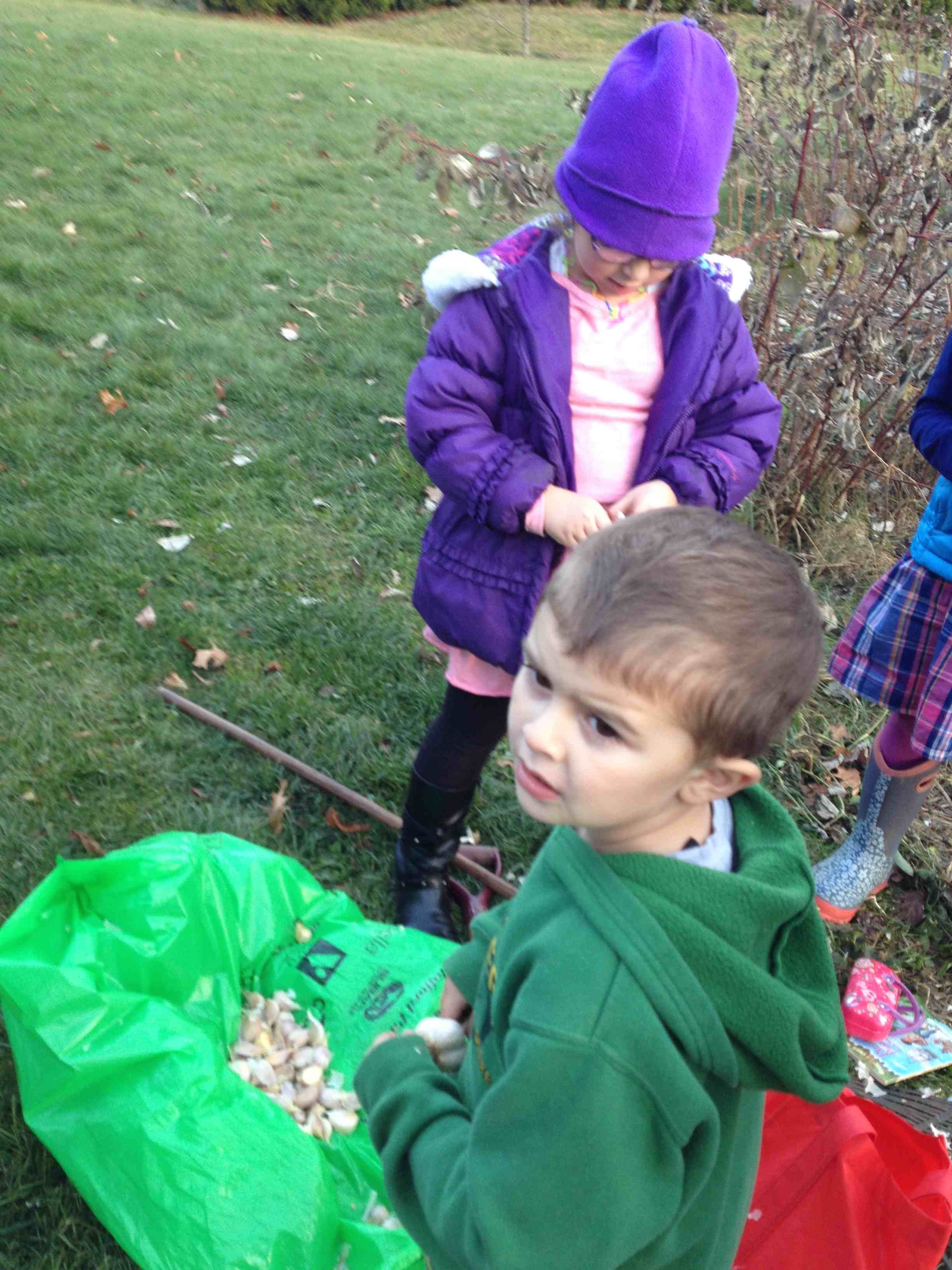 The first trick learned when planting garlic is how to separate those little cloves from the “momma” bulb. A supportive friend is helpful. But if you’re a budding farmer like Sabin, not yet five, you can figure this out in a snap! Sabin’s mom, Amy Rice Sciacca, has really given us support for next year’s garlic crop. First she bagged up 25 gallons of her horse manure. Then she and her kids gave up a horse ride on a beautiful fall day and, instead came over to help us plant!