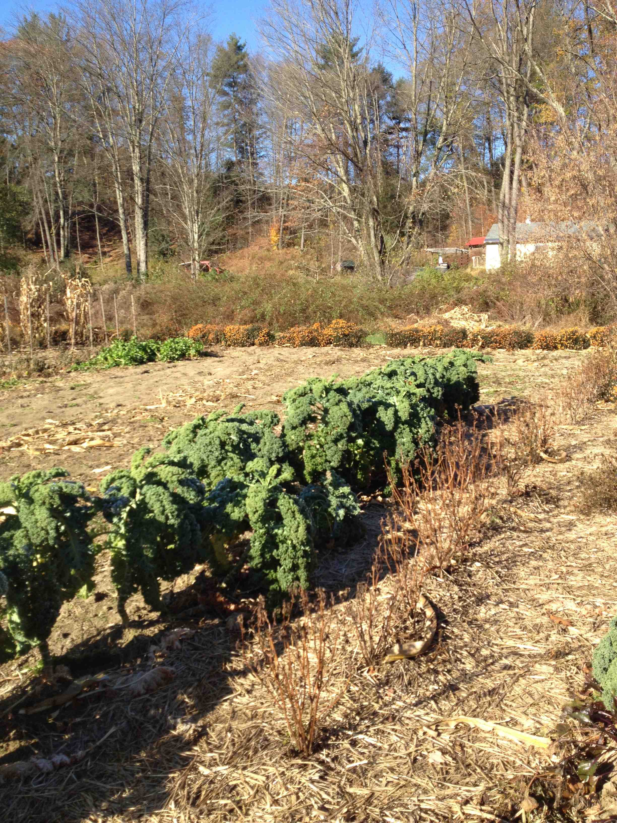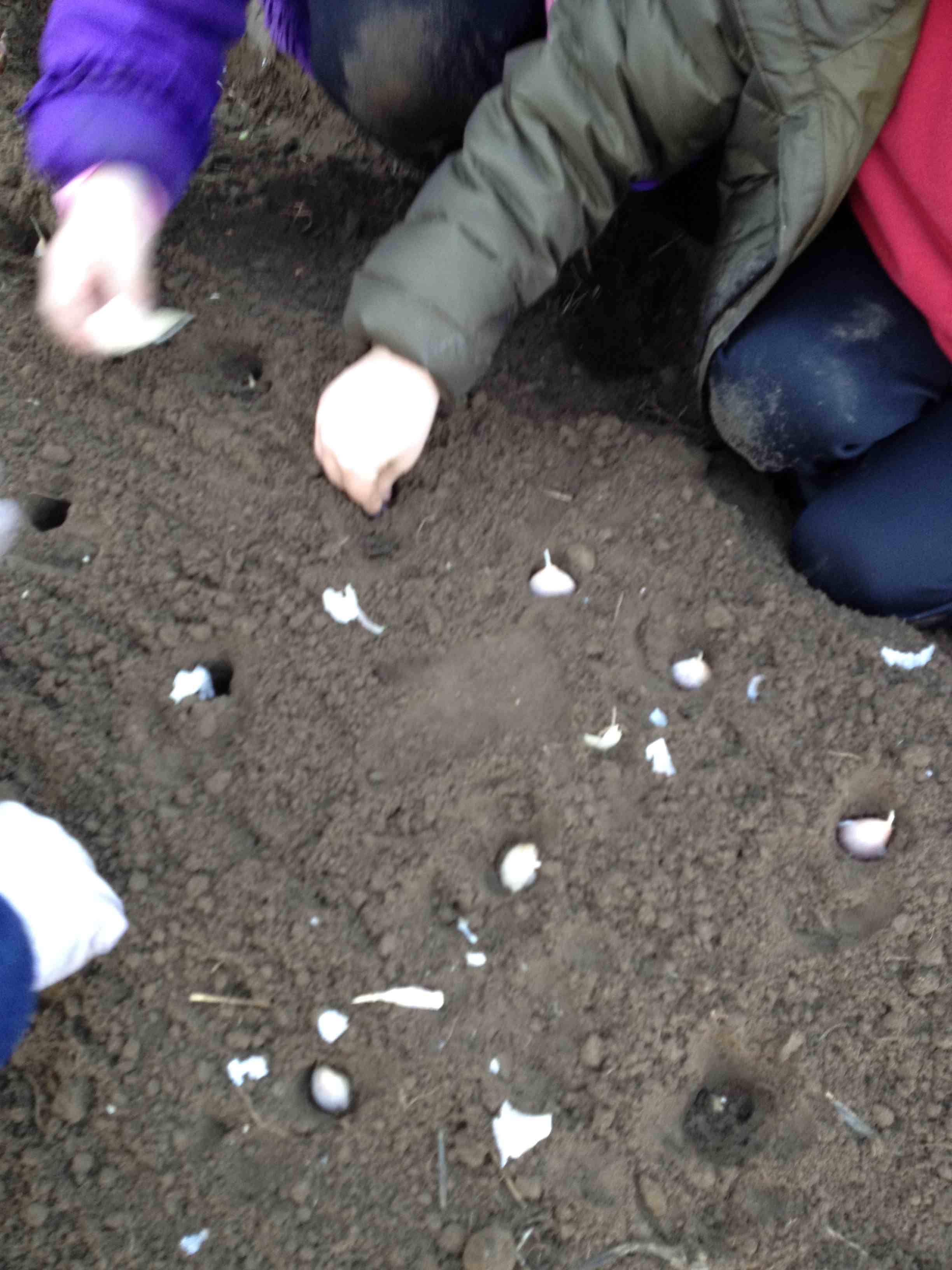 We raked the straw that was still on our garden paths and recycled it to cover the garlic bed. We decided the straw was like the sheet for the winter and snow, soon to follow would be the ‘comforter’ for the garlic cloves sleeping under it. We’ll harvest the garlic in mid July.
