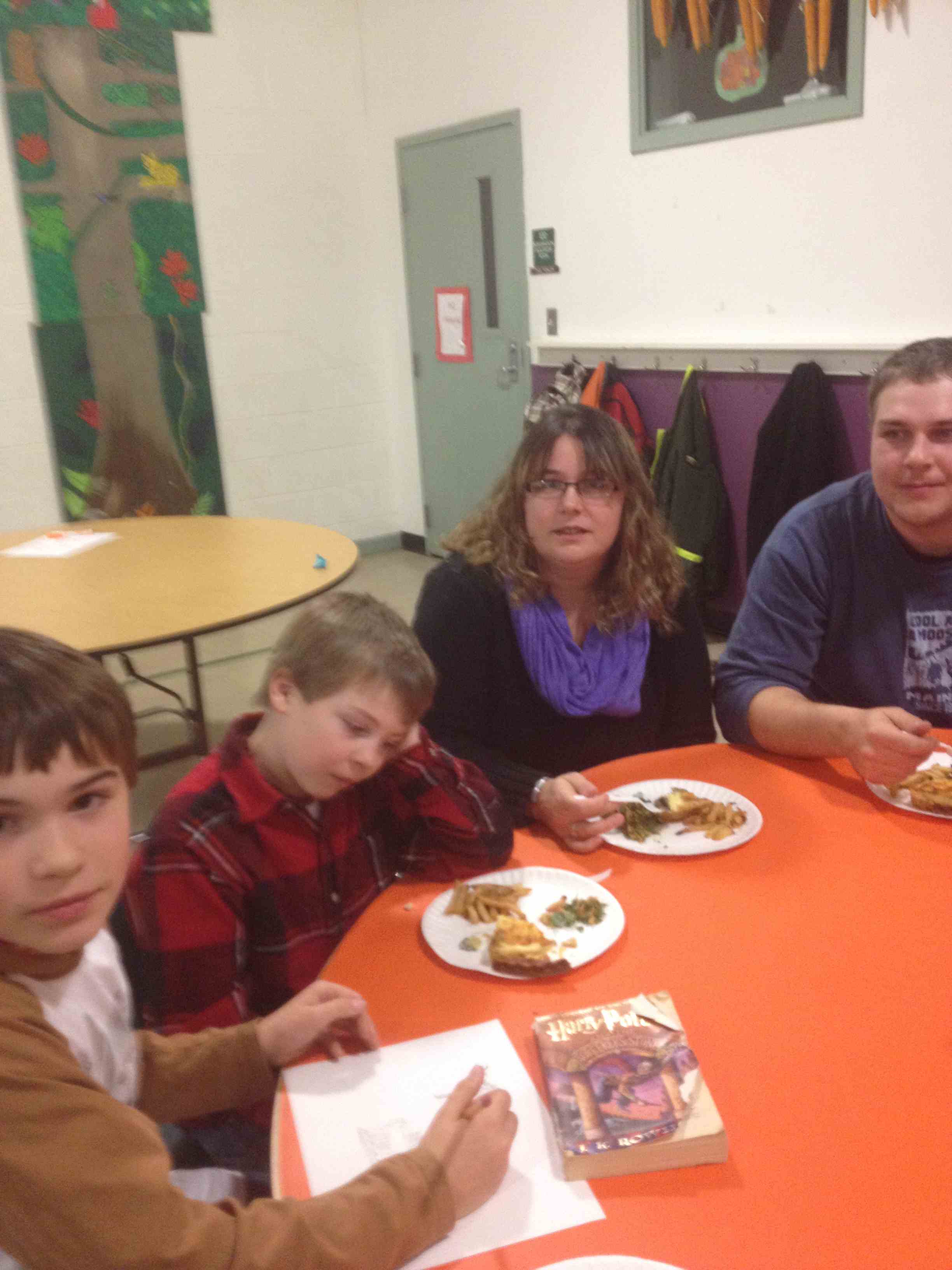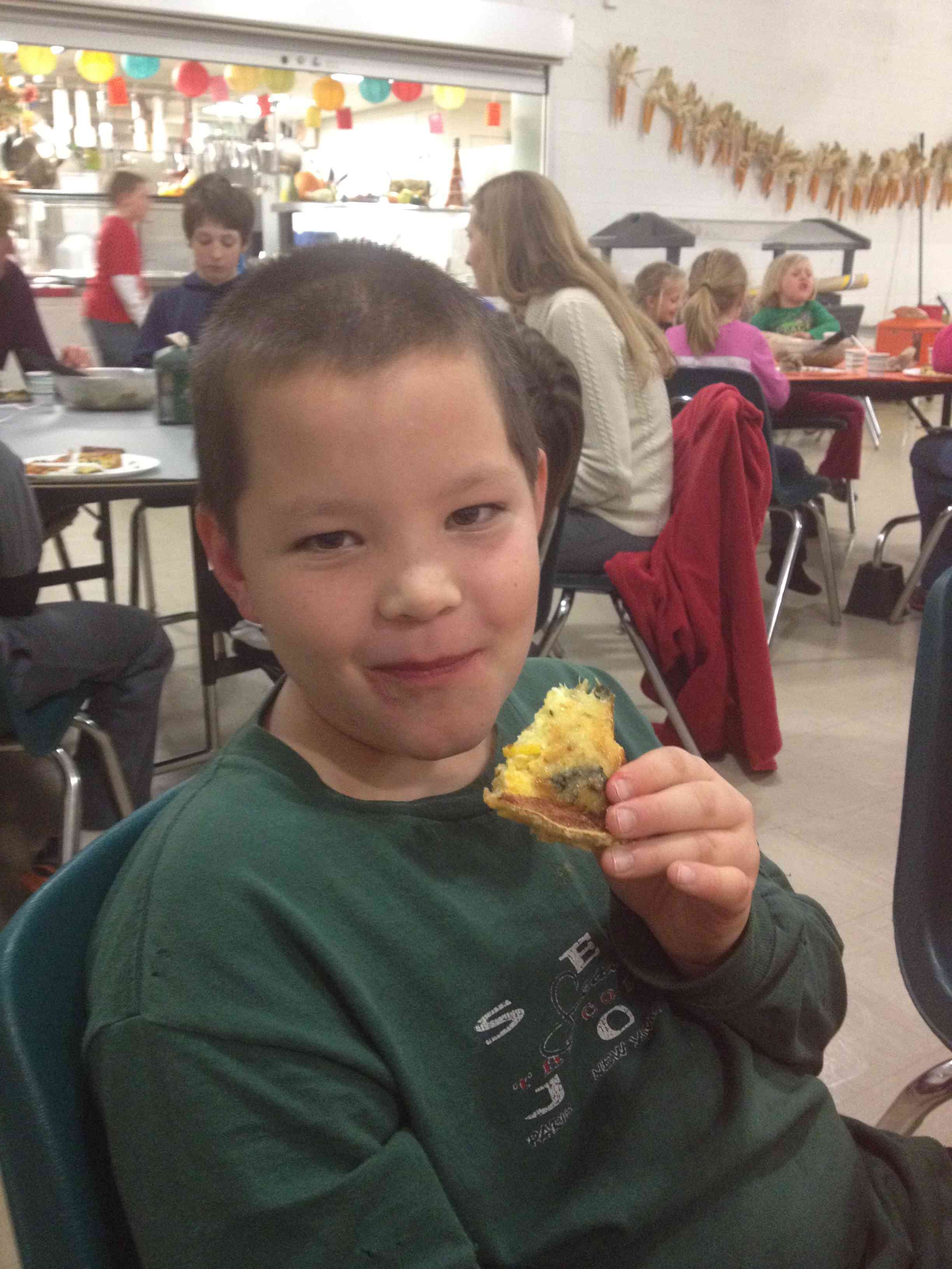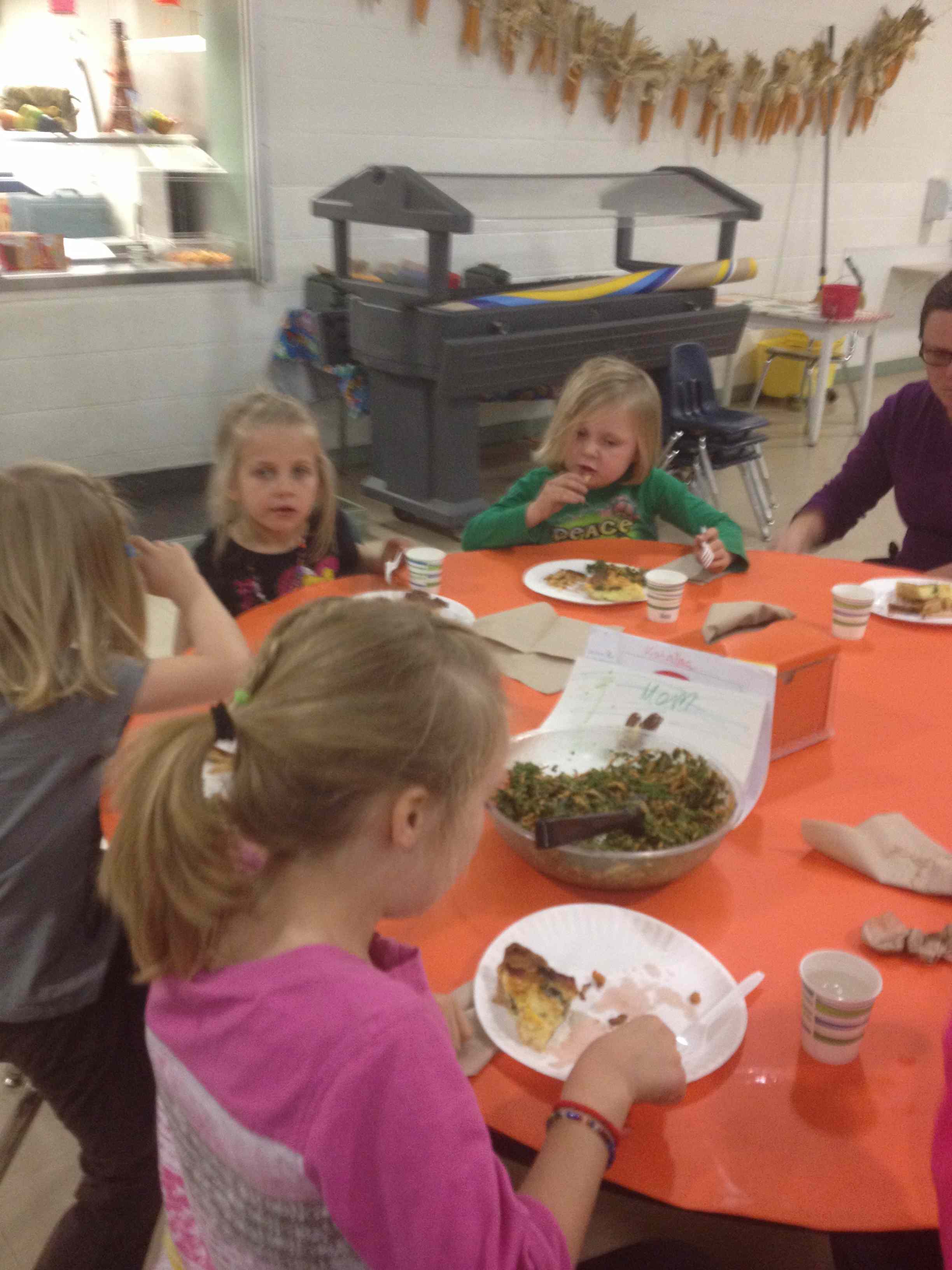 This November we also hosted an After School Program dinner for parents and children. Forty family members enjoyed vegetable quiche and kale slaw, followed by applesauce for dessert. The applesauce was made by the children in the After School Program. Apples were donated by Russell Allen of Connecticut Valley Orchards. While students made dessert, their parents participated in a discussion on techniques for getting reluctant eaters to try new foods. Everyone had a great family strategy or story to contribute. We all came away with a few new ideas for getting children to make healthy food choices. Some ideas: Each child is different in temperament, affecting his or her willingness to take risks. Be patient, but be persistent. Sometimes it take four to sixteen attempts before a child is ready to accept a new food. Some children have sensory issues and don’t for instance enjoy any foods that seem lumpy or crunchy. Often if a child participates in the creation of the dish, it is more likely that s/he will eat it.