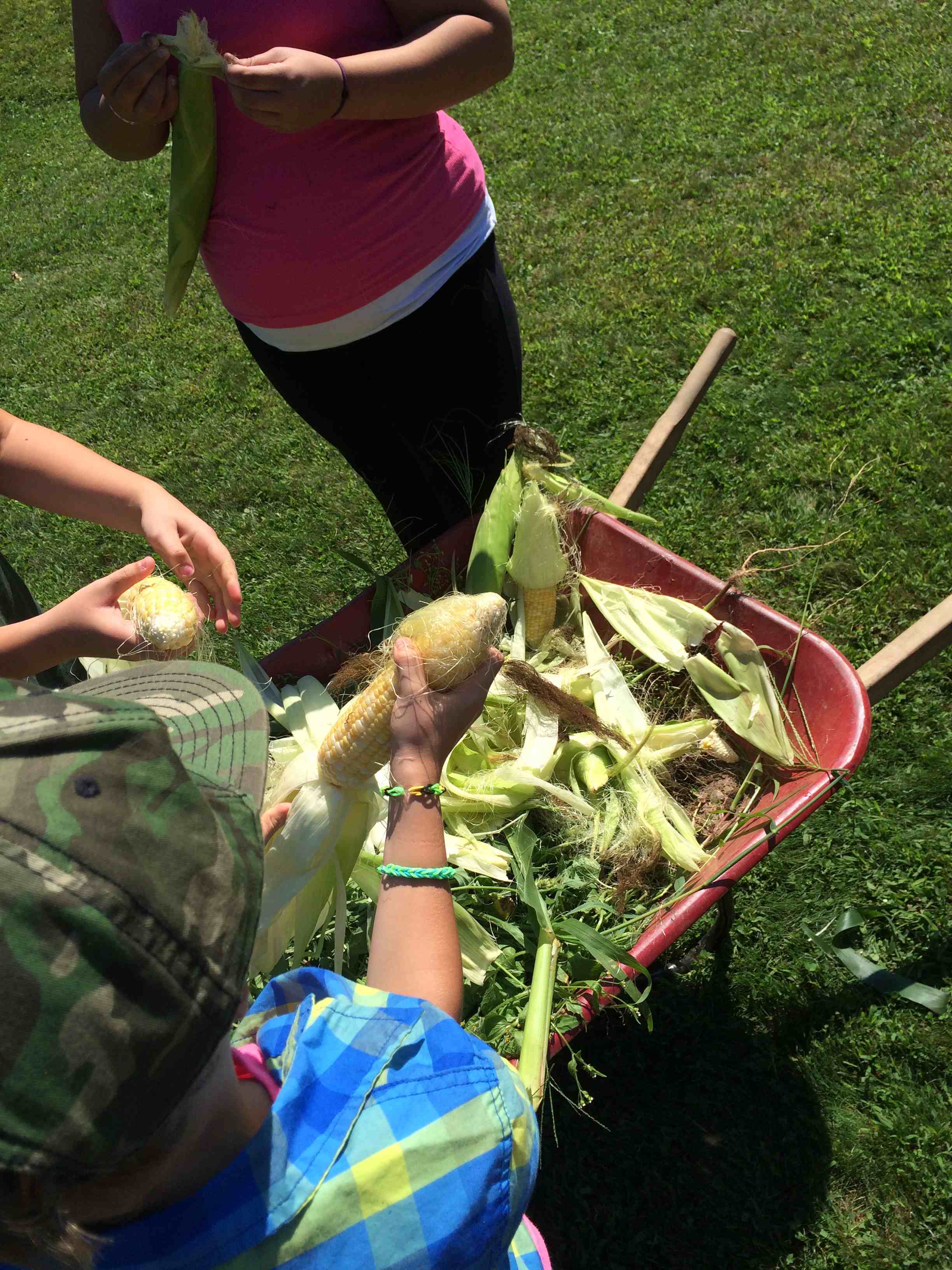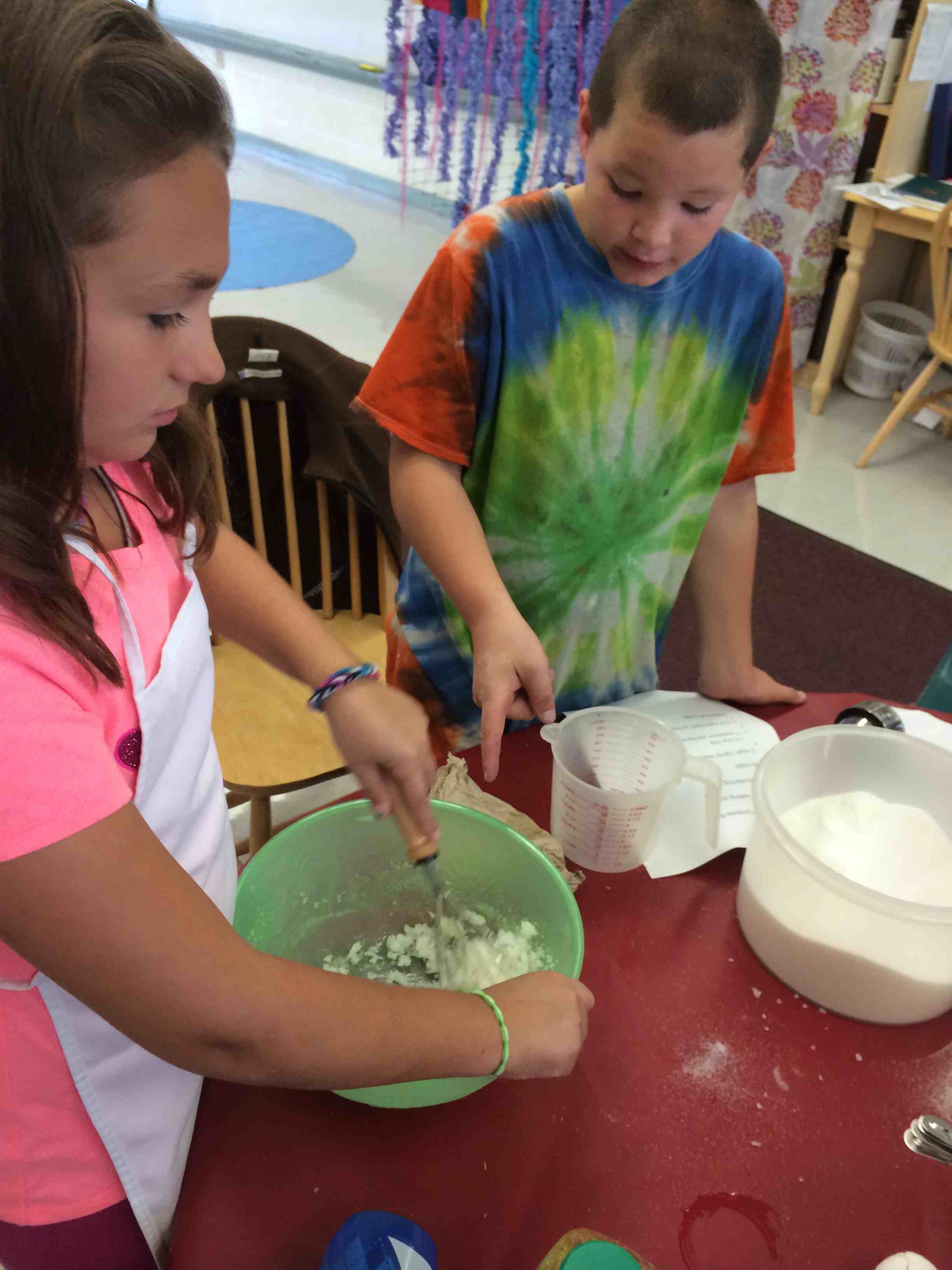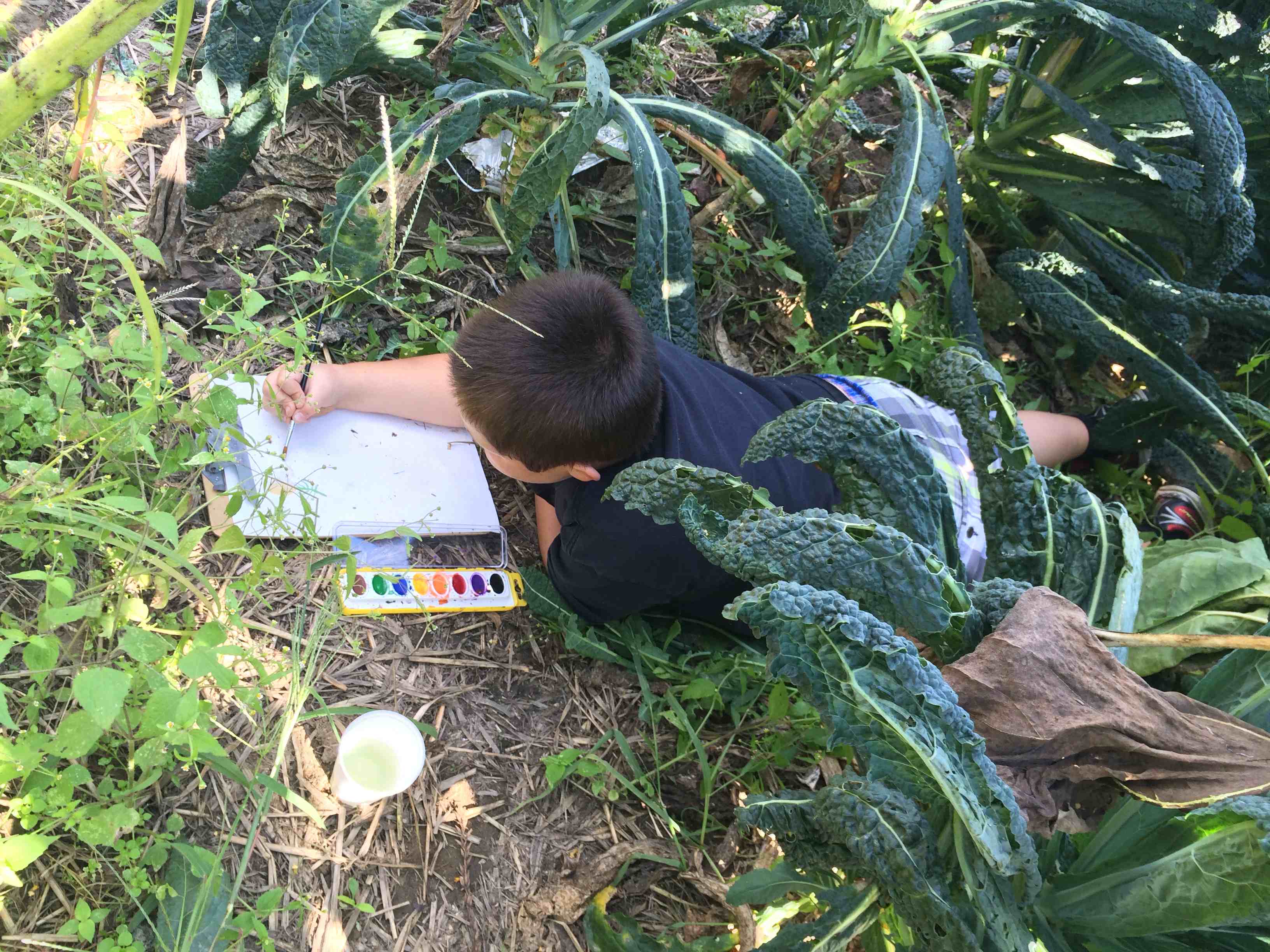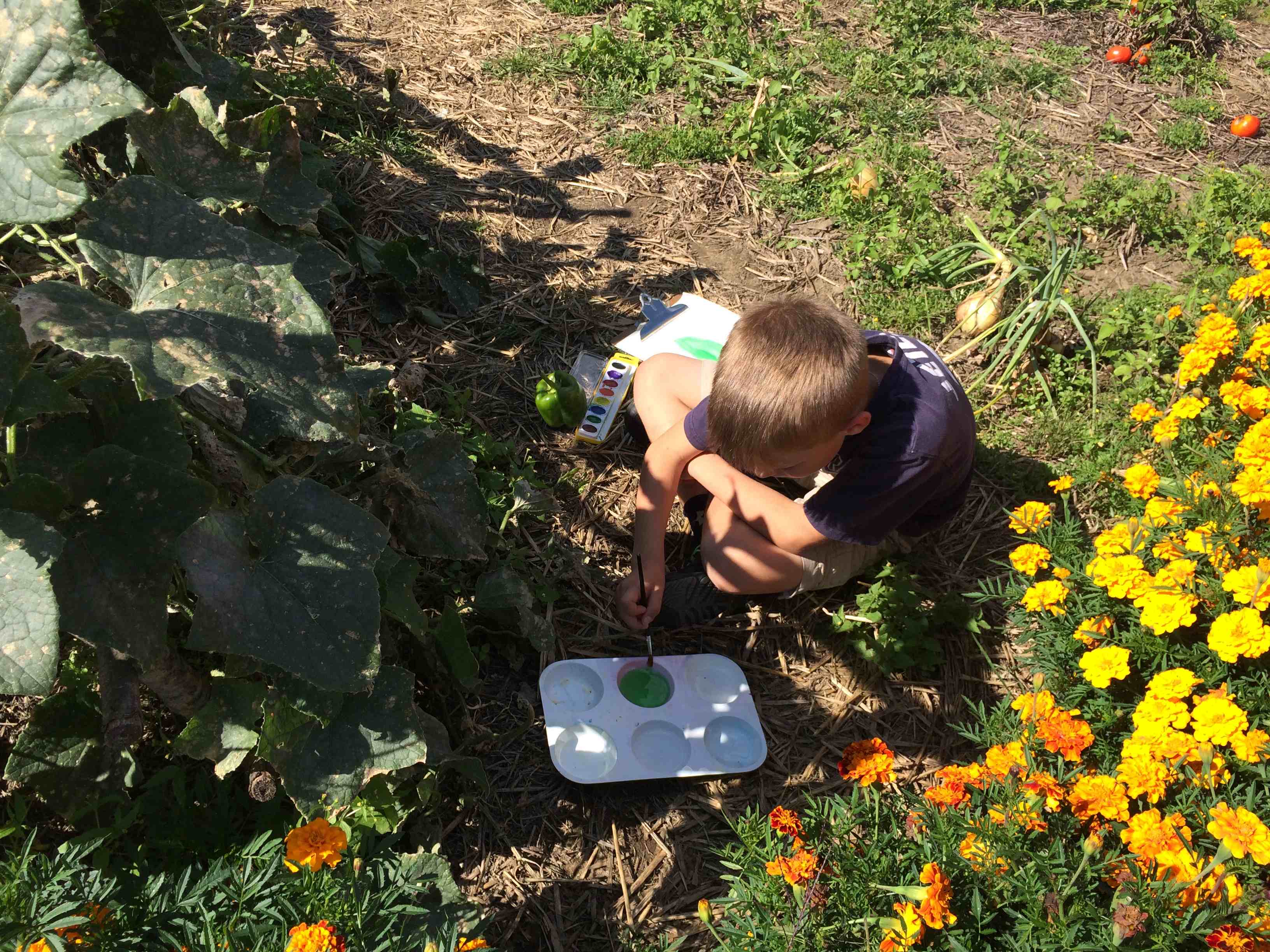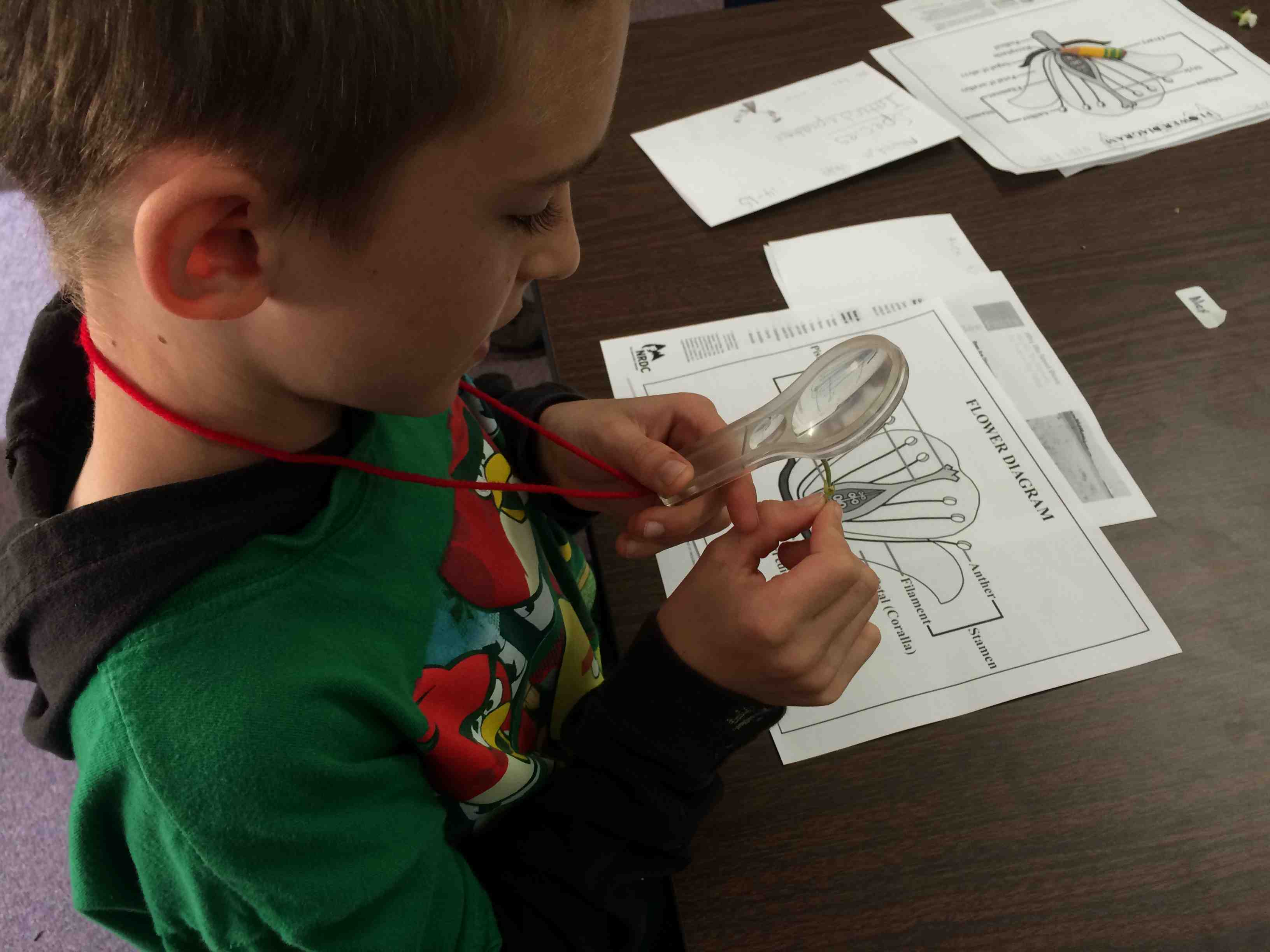 We went out to the garden to check on our new beans. They provide a great illustration of the pollination needed to create fruit from a flower. We saw very few honey bees, but a lot of bumble bees, another species of bee that helps pollinate. I think the most exciting part of this experience was looking up close with magnifying glasses. I hope to use them again soon with these budding scientists!