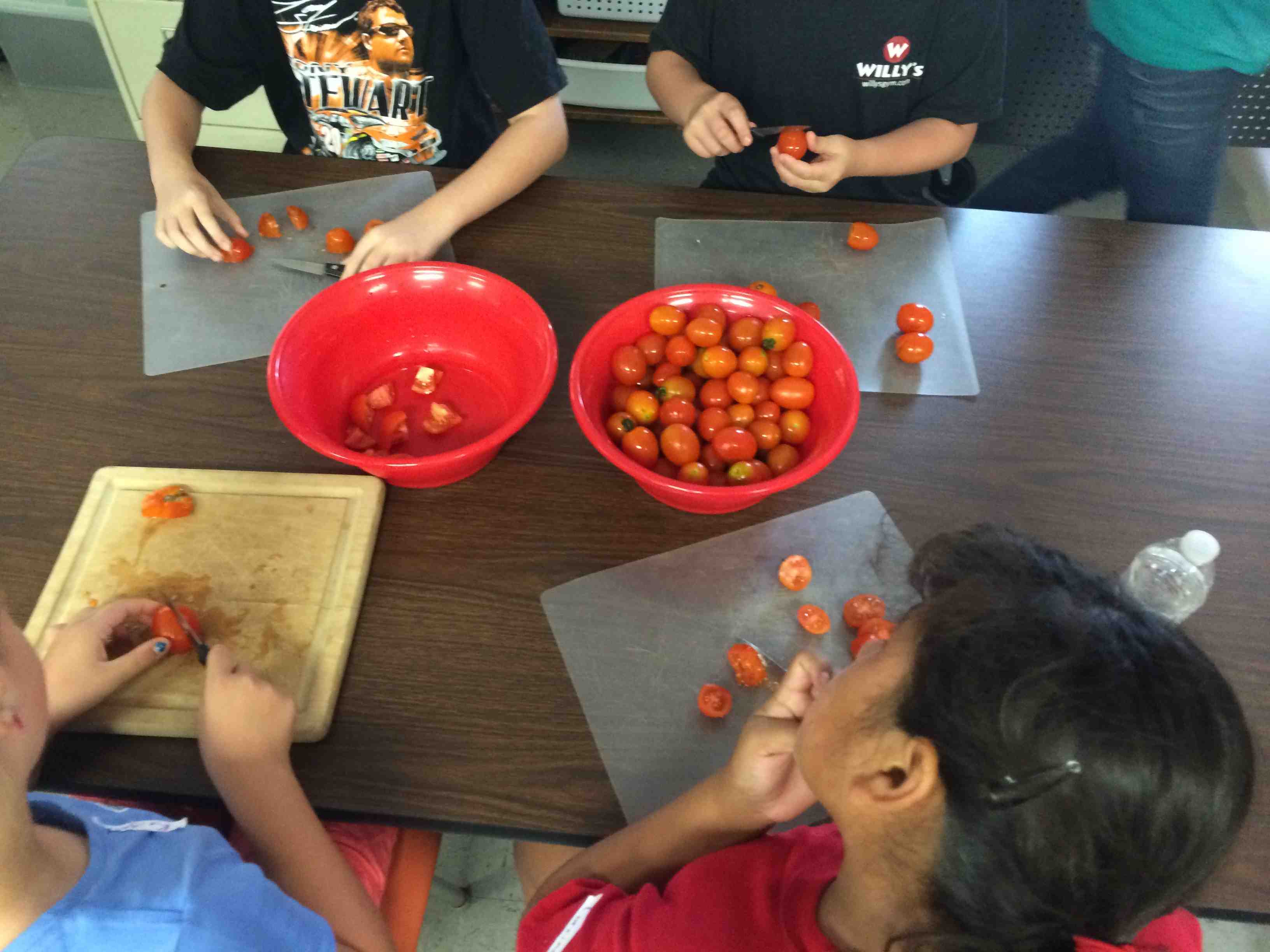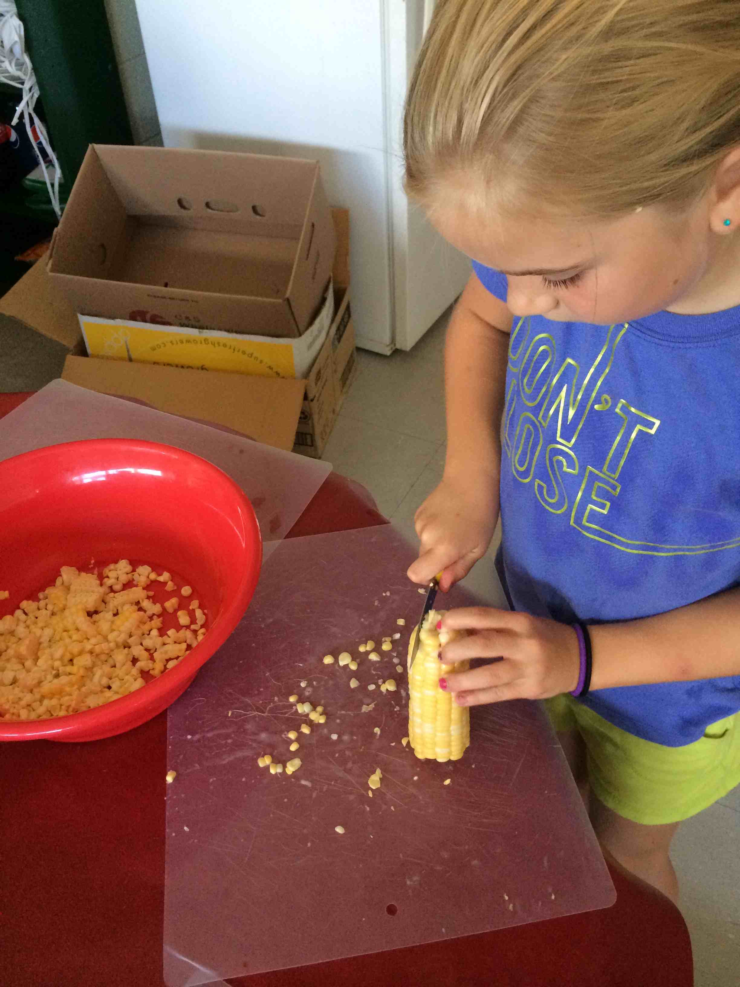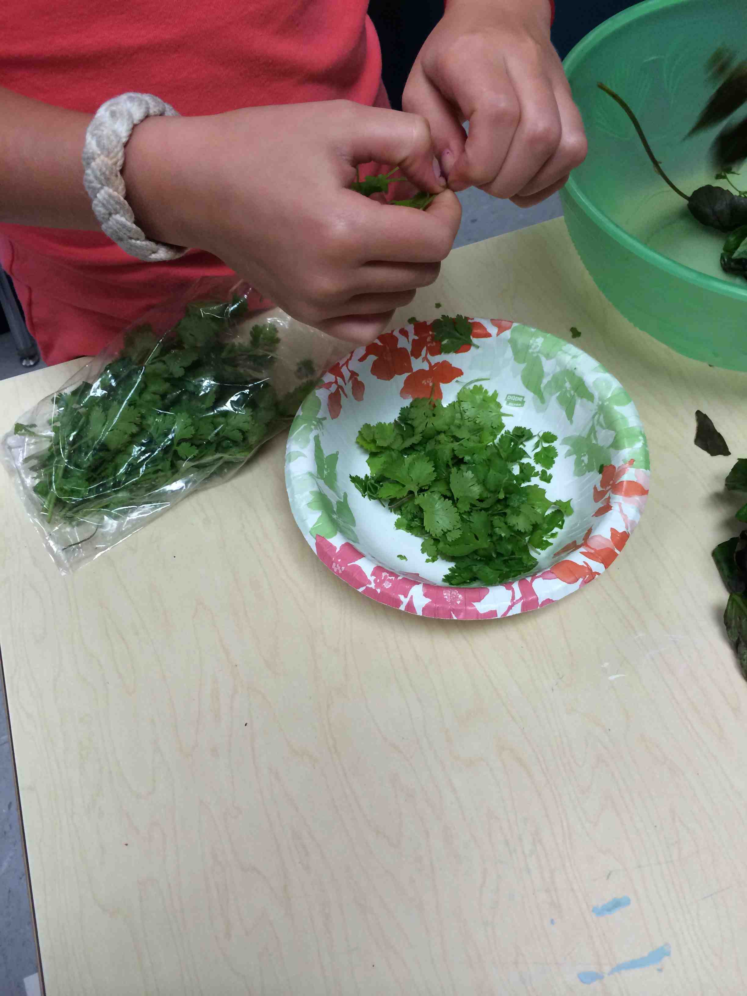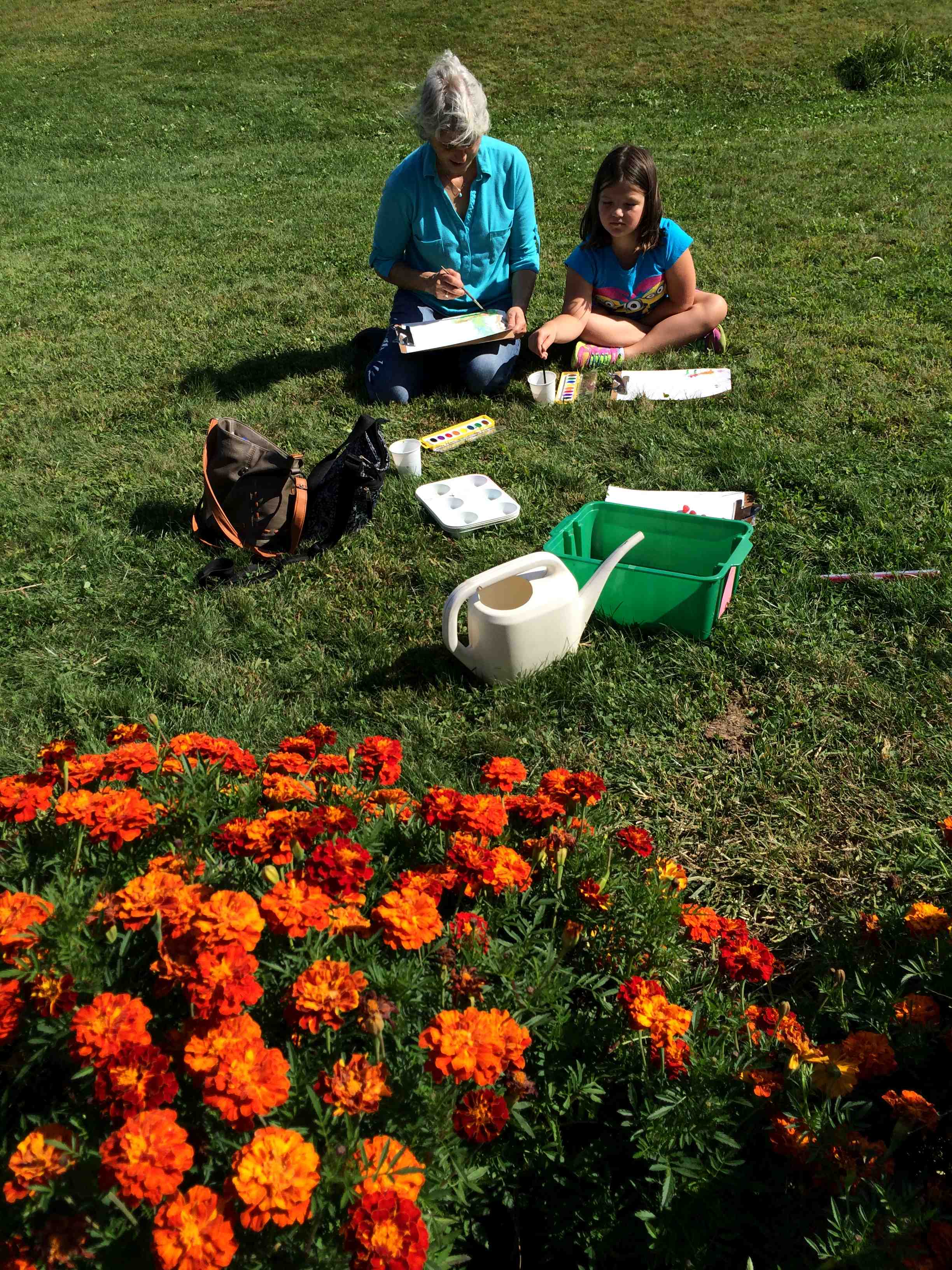 We went out to the garden to check on our new beans. They provide a great illustration of the pollination needed to create fruit from a flower. We saw very few honey bees, but a lot of bumble bees, another species of bee that helps pollinate. I think the most exciting part of this experience was looking up close with magnifying glasses. I hope to use them again soon with these budding scientists!