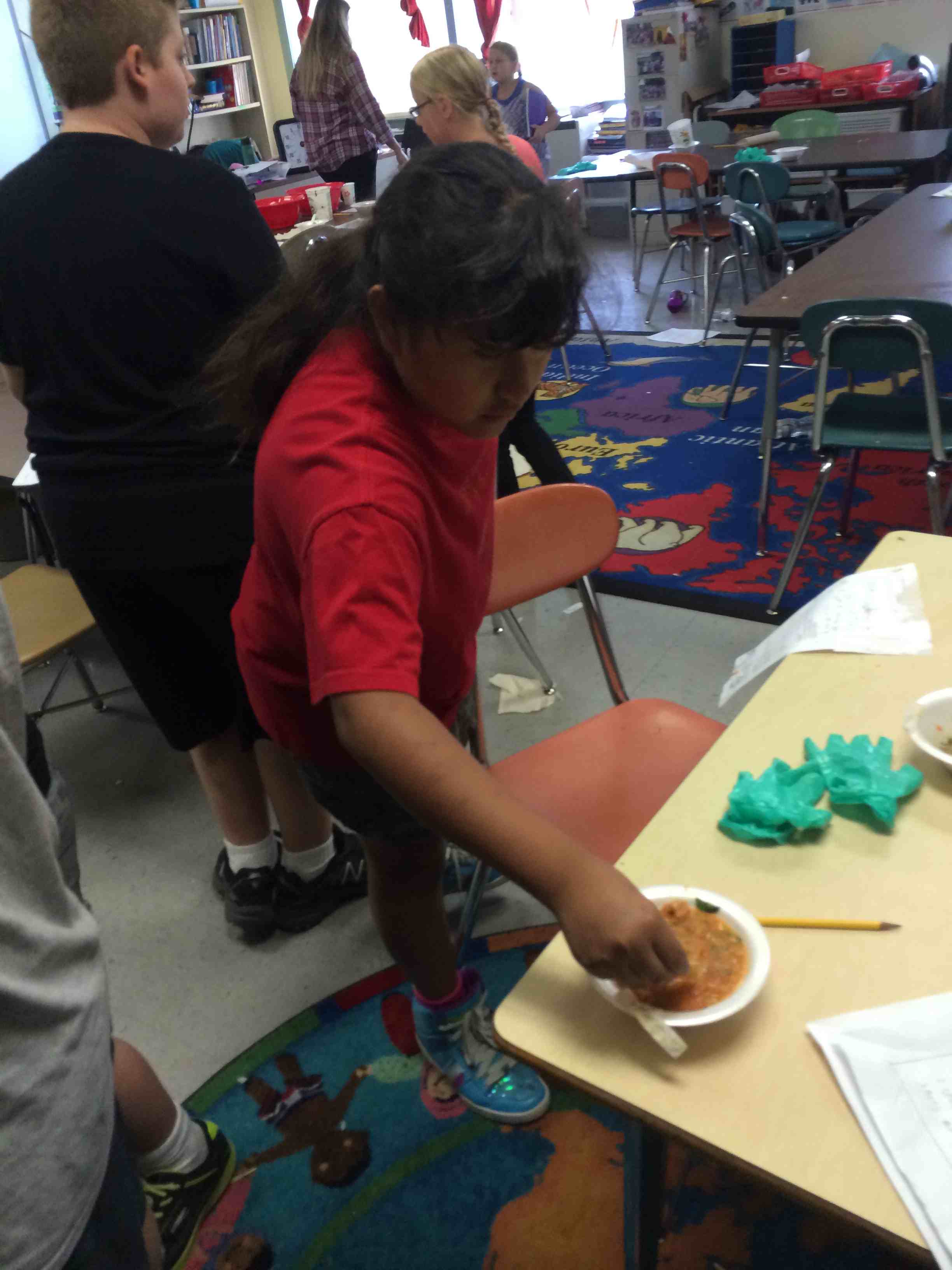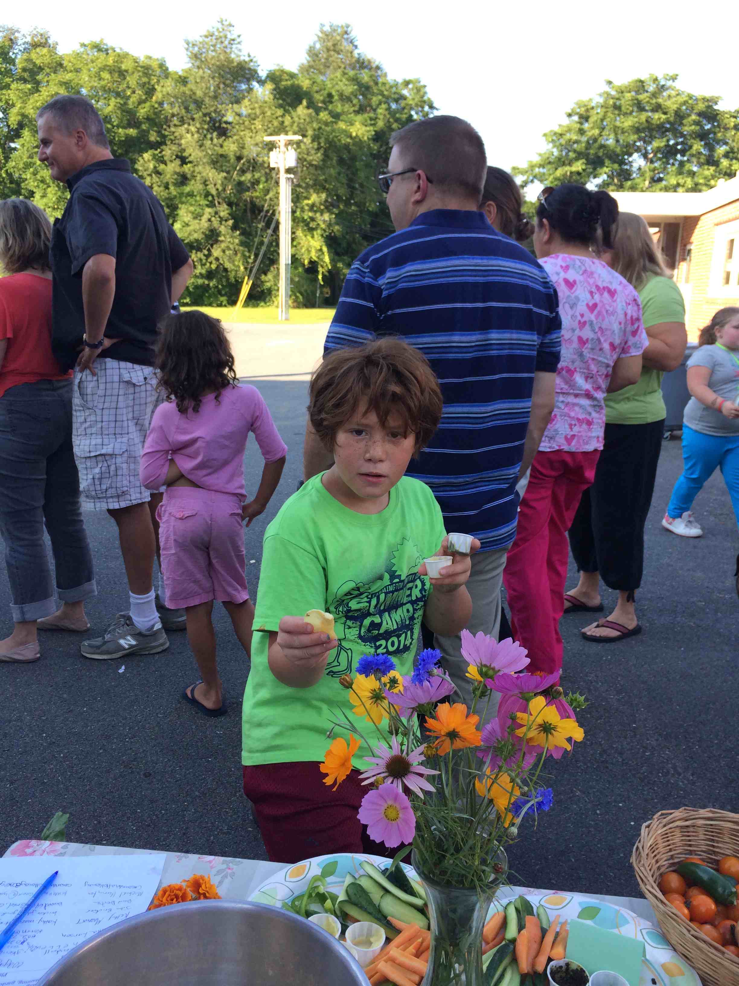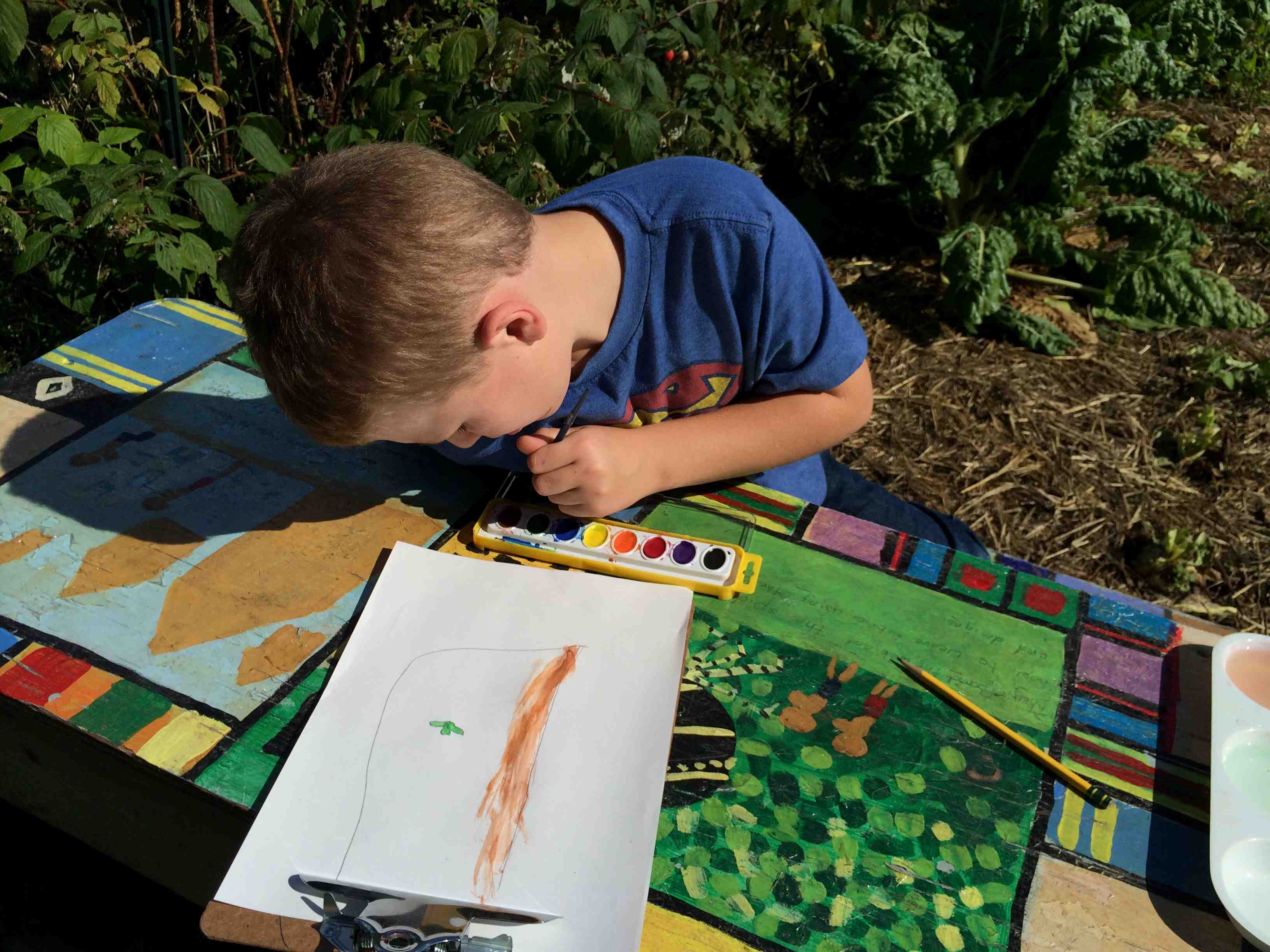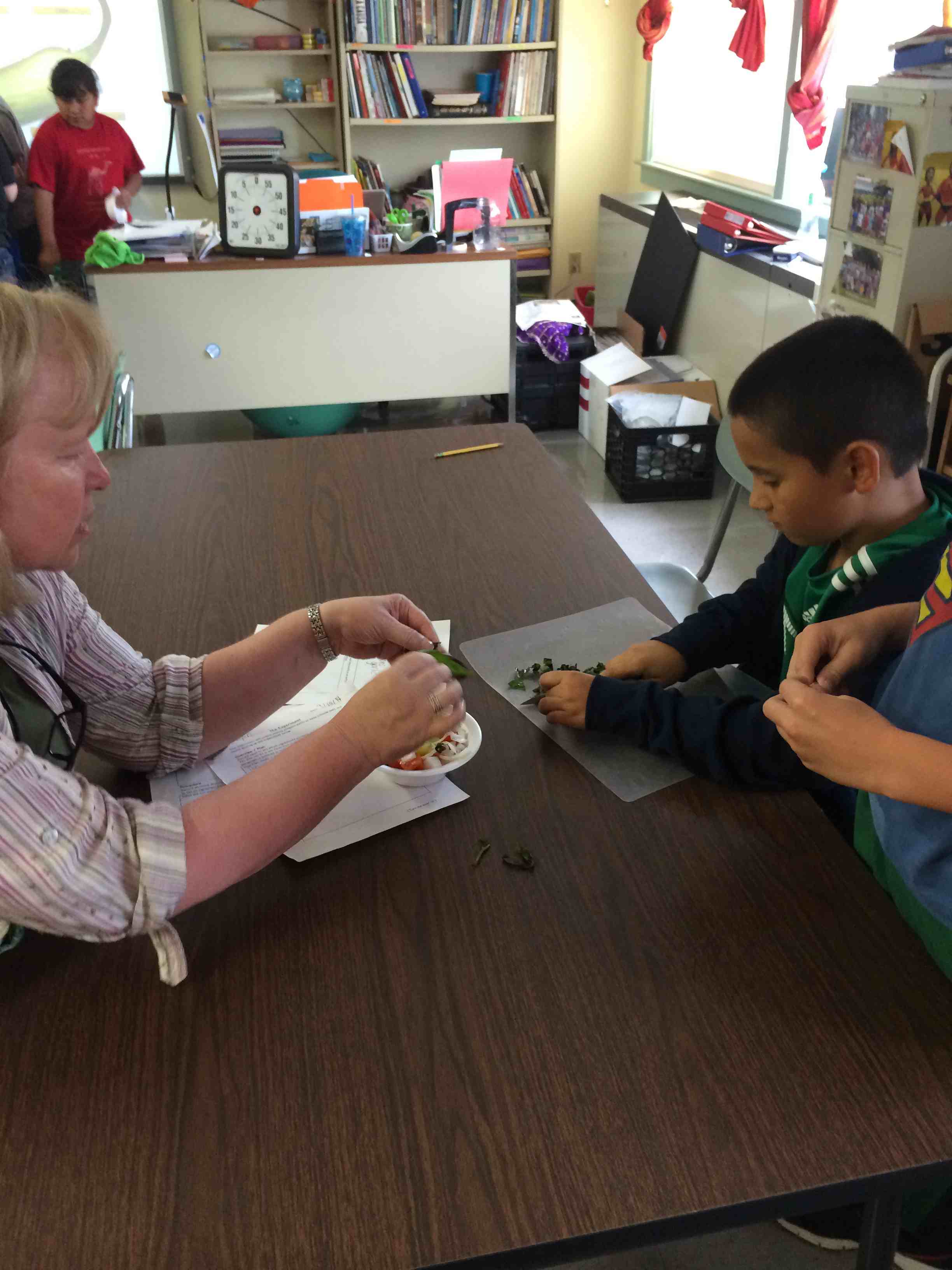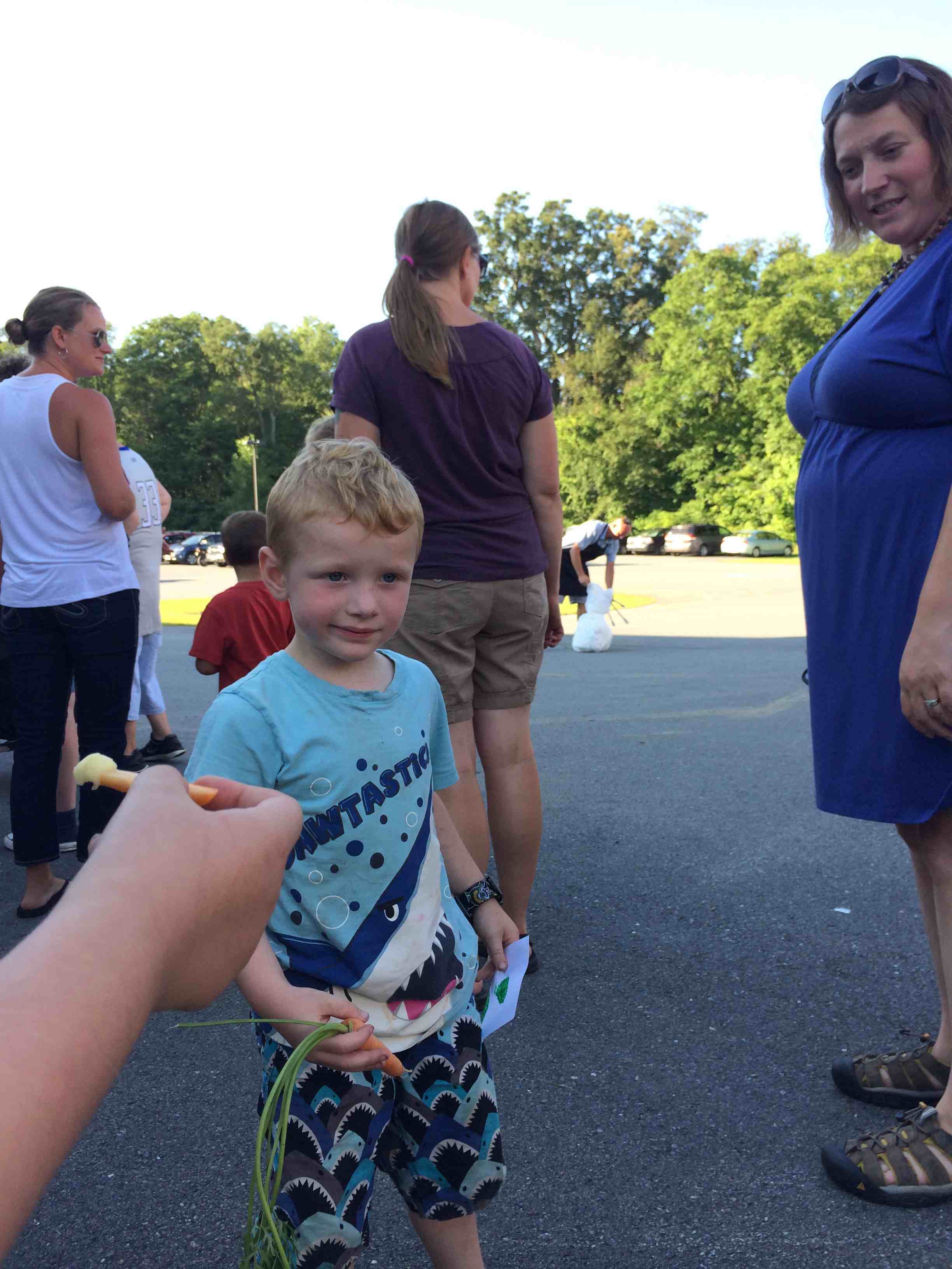 We went out to the garden to check on our new beans. They provide a great illustration of the pollination needed to create fruit from a flower. We saw very few honey bees, but a lot of bumble bees, another species of bee that helps pollinate. I think the most exciting part of this experience was looking up close with magnifying glasses. I hope to use them again soon with these budding scientists!