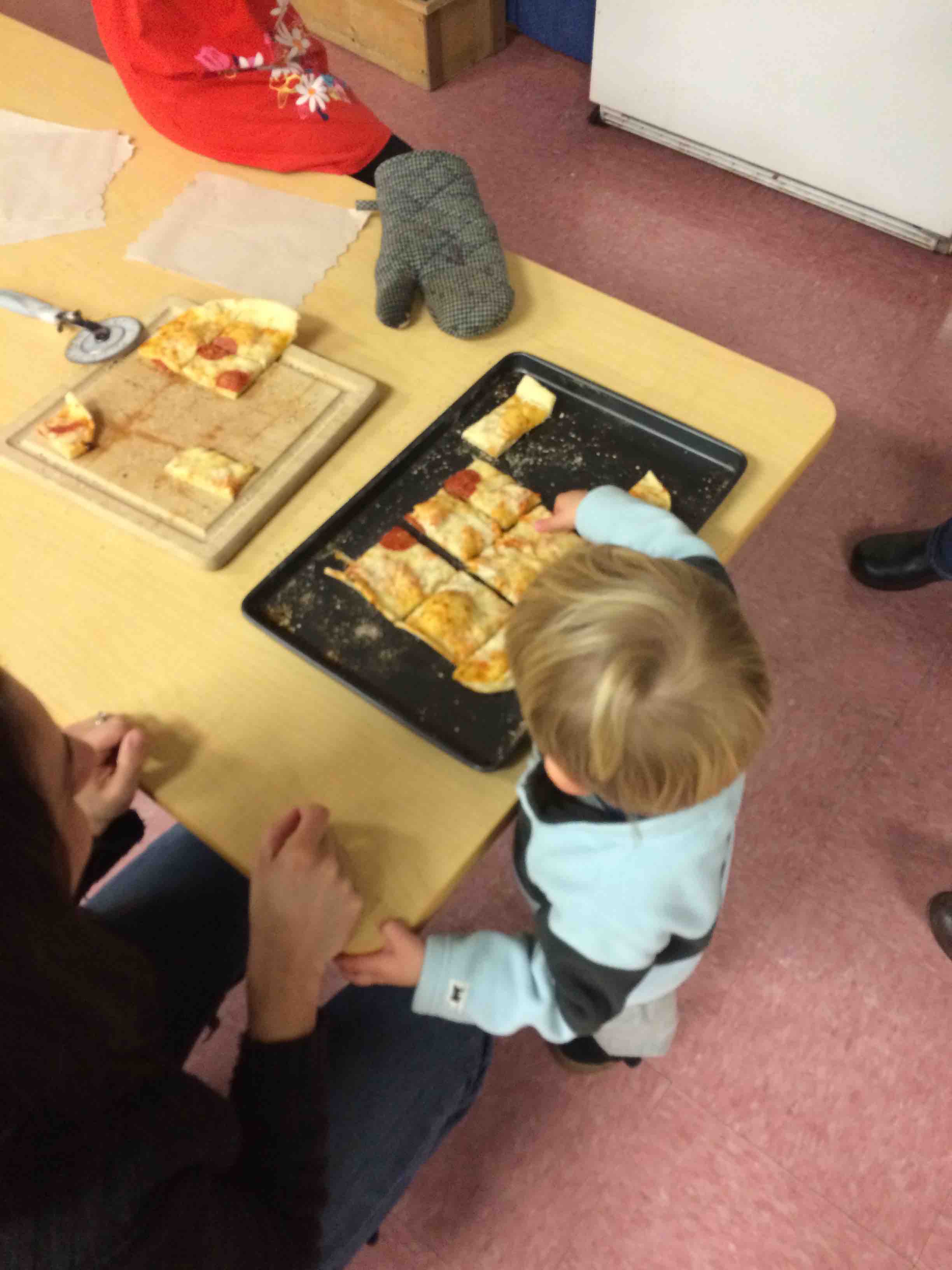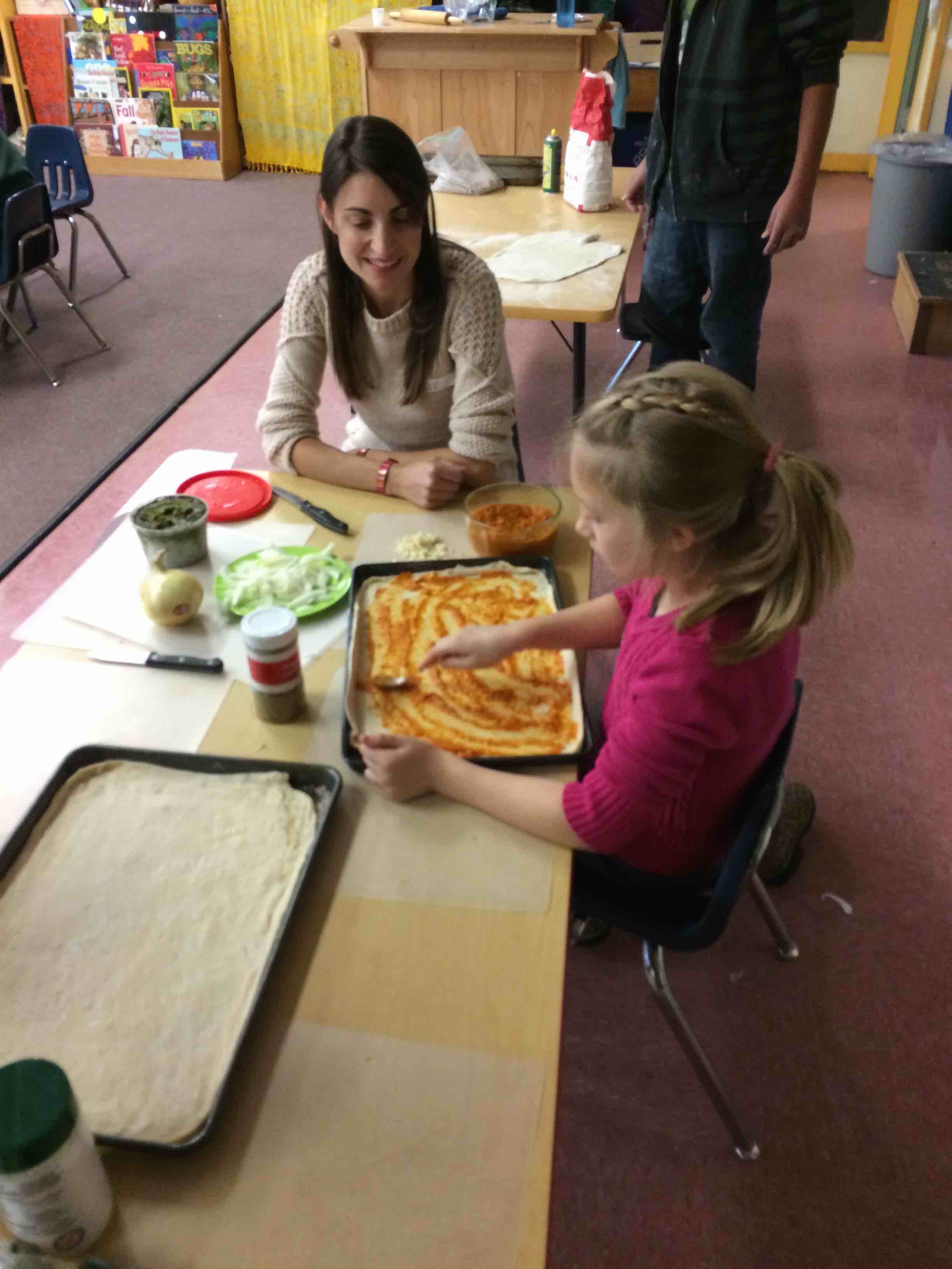 Pizza dough can be made ahead…even frozen (and thawed a half day before you need it). All you need are flour, salt yeast, oil, water and a warm place for the dough to rise. 1 teaspoon of yeast dissolved in 1 1/3 cup of warm water until bubbly (5 minutes). Add 1 tsp salt, 2 Tb. oil and 4 cups of flour (or enough to create dough that feels like play dough). Knead the dough a bit (8 min) until it feels smooth and then set it back into a greased bowl. Find a warm place for the dough to rise for 3 hours. Cover it first with plastic wrap. When it doubles in size, you can put it into a zip-lock freezer bag and freeze it or roll it out right away on a floured board to make pizza! (Makes about a cookie sheet sized pizza.)