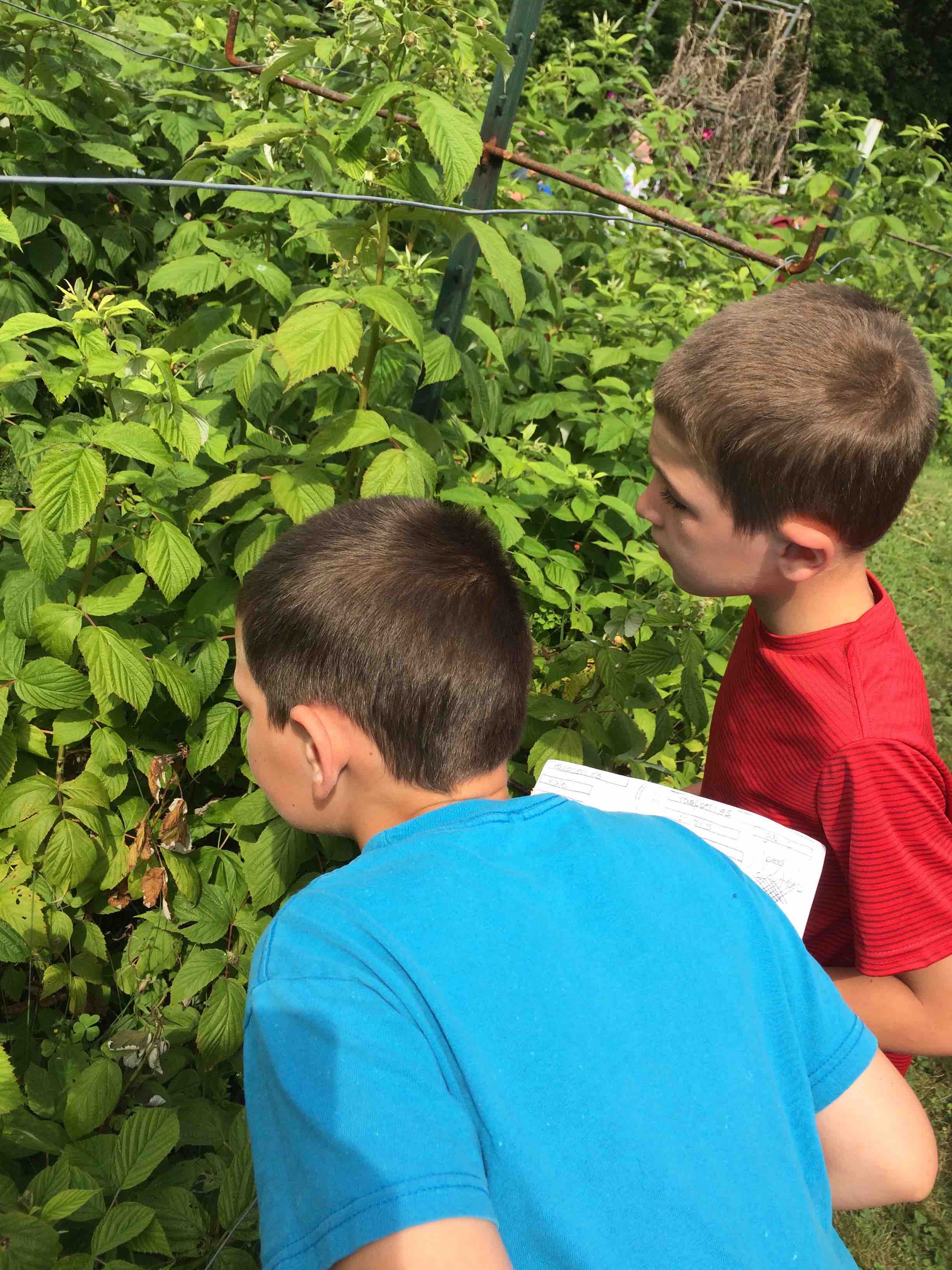Students feasted on the still yummy berries from old canes.