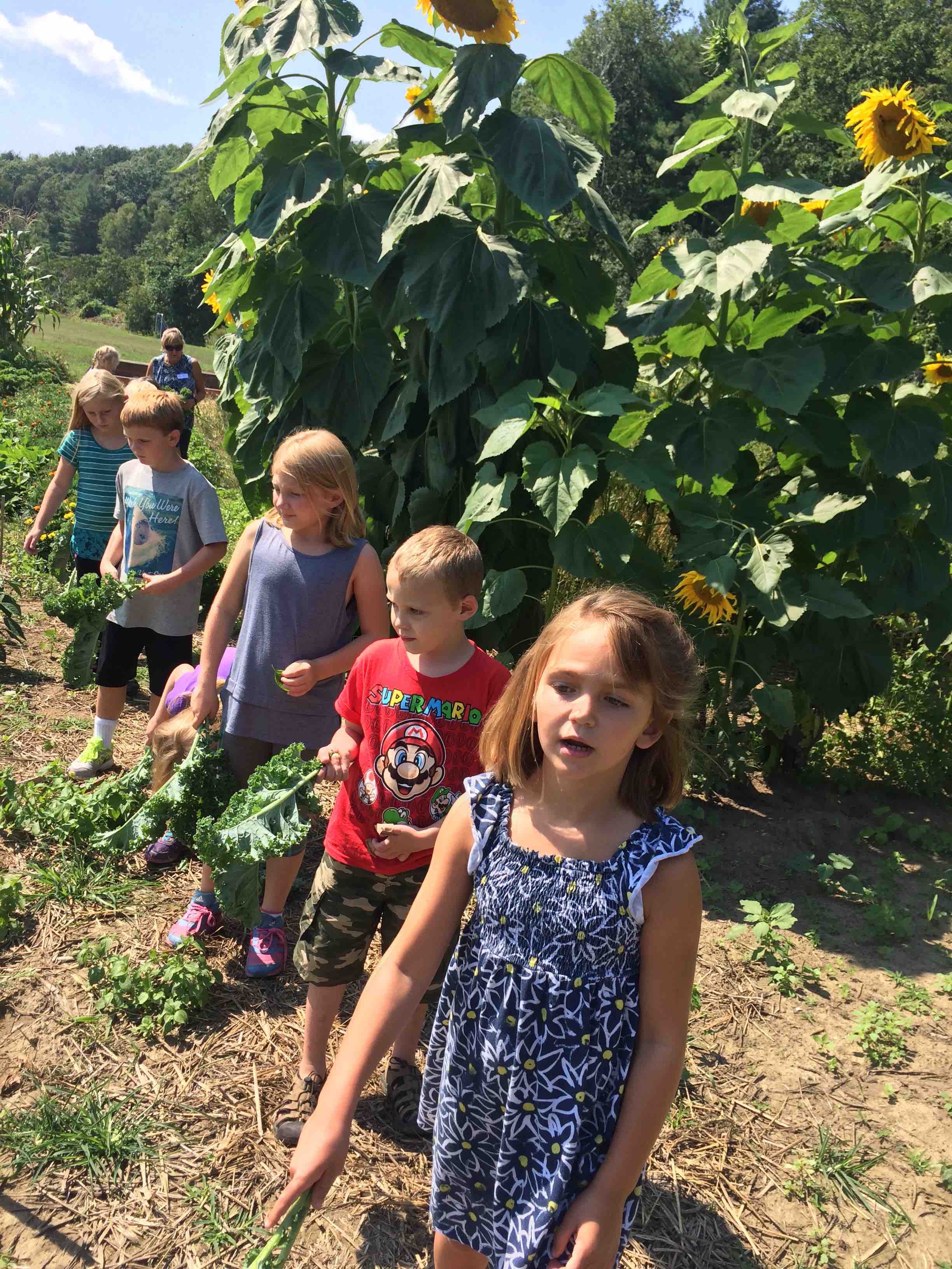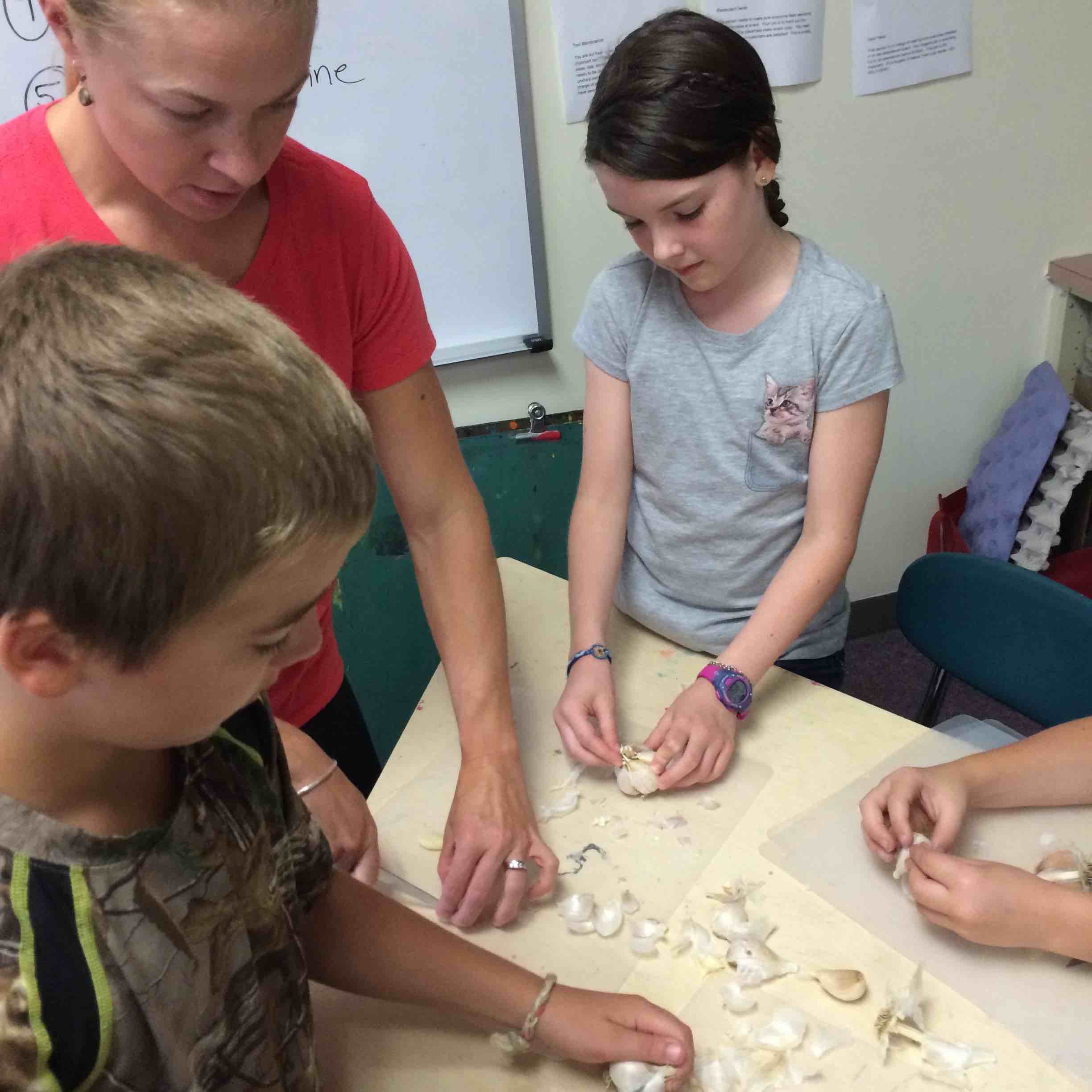 This class remembered planting the garlic we used today last fall. Garlic cloves are planted sometime in October here in Vermont and they overwinter in the ground. Garlic bulbs are ready to be harvested in July.