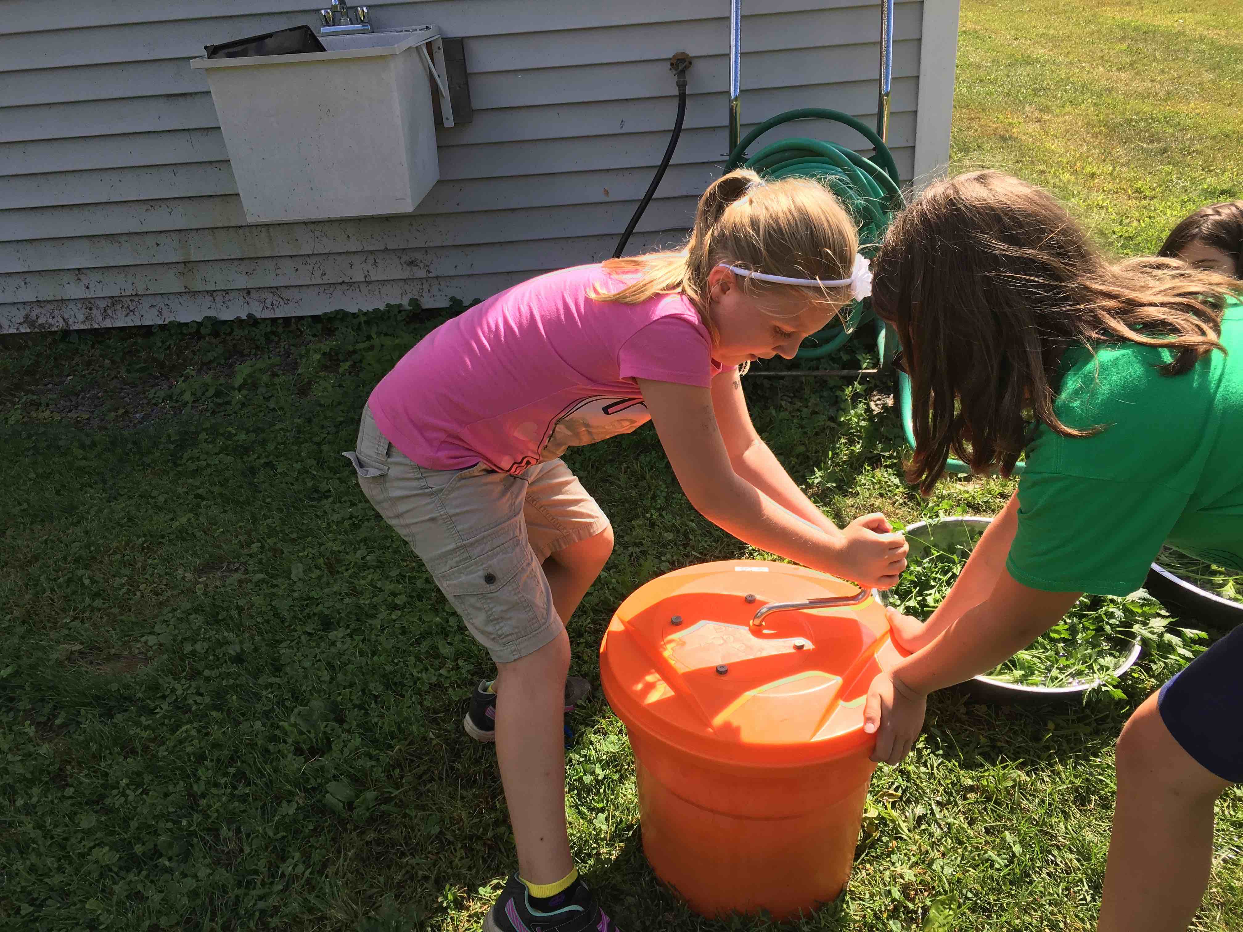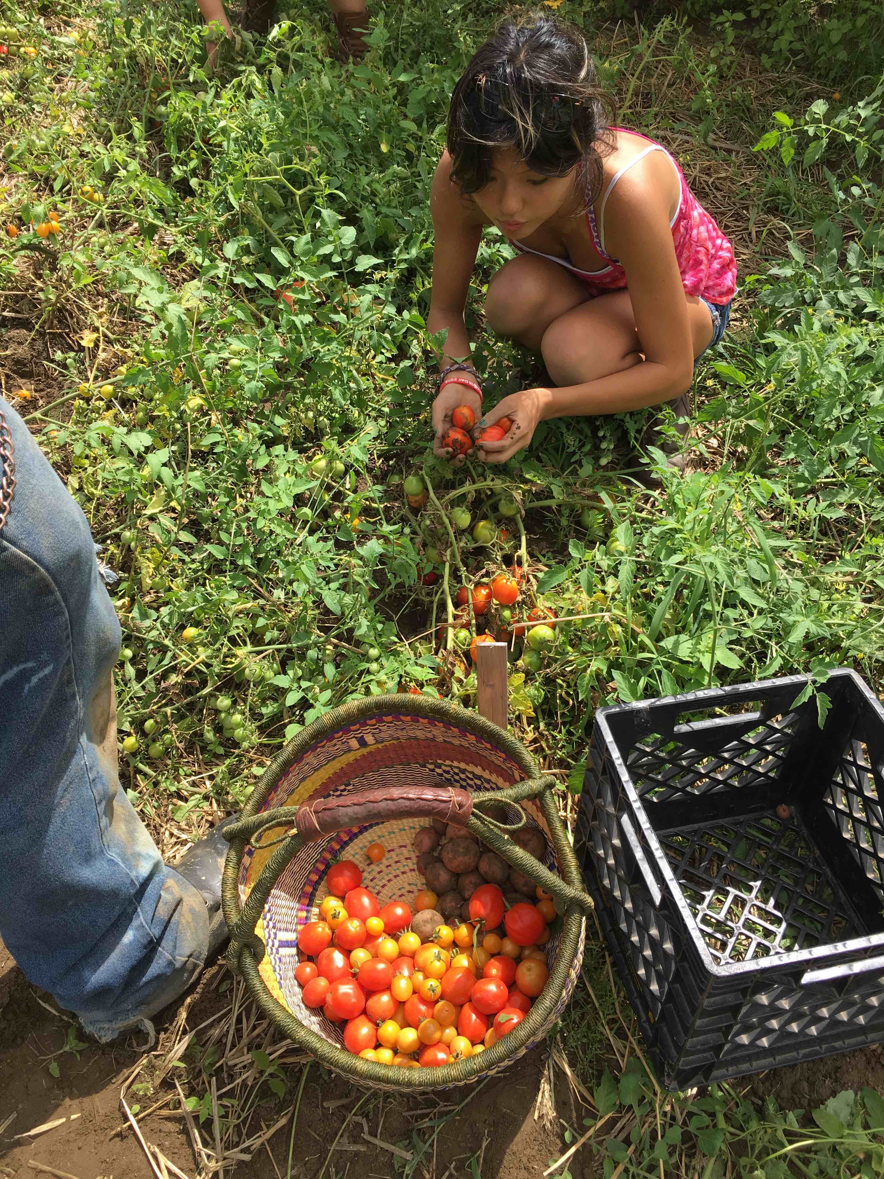 Keene State University Dietetics Post Grads visited one morning with their professors. Our chef, Harley and his assistant, Melissa frequently incorporate our produce into their menus. You’ll see some extra tomatoes bubbling into sauce in one of the photos below. At recess time, kids love a run out to the garden to see what’s happening and to taste a few ripe raspberries.
