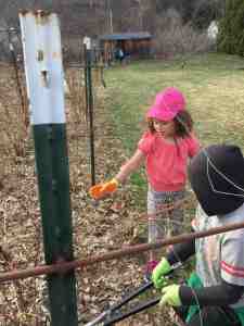 We also trimmed last year’s raspberry canes down to the ground and we pruned the apple and pear trees.