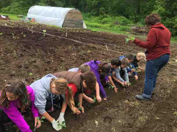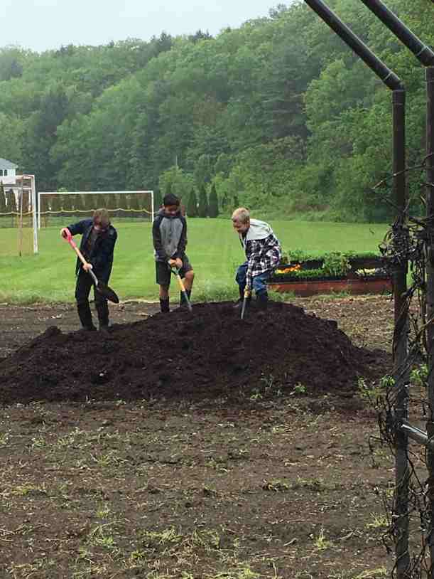 After we mapped out a plan for where seedlings would go, each class came out during the day to look at the garden map and to plant a crop. In the summer and fall we’ll harvest for our school lunch program and for study projects. We need to thank Paul Harlow and the generous farmers at Harlow Farm as well as Dan Harlow at Harlow farm stand for their donations of labor and seedlings. We also thank the Goodell Farm for composted manure. Without their help we wouldn’t have our incredible school garden. What an amazing community!