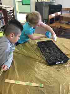By February, we’re starting to dream about melting snow and signs of spring. Although those dreams are a bit far from reality, we can still plant little seeds of hope that winter will soon be over. In the library, classes learned about starting seedlings. They got a close-up look at different types of seeds using hand held magnifying glasses. Then they planted their own marigolds, tomatoes and basil. These flats of seedlings will take a “vacation” at the Harlow Farm greenhouse for a few months and then they’ll be planted into our school garden.