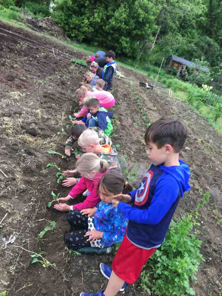 After we mapped out a plan for where seedlings would go, each class came out during the day to look at the garden map and to plant a crop. In the summer and fall we’ll harvest for our school lunch program and for study projects. We need to thank Paul Harlow and the generous farmers at Harlow Farm as well as Dan Harlow at Harlow farm stand for their donations of labor and seedlings. We also thank the Goodell Farm for composted manure. Without their help we wouldn’t have our incredible school garden. What an amazing community!