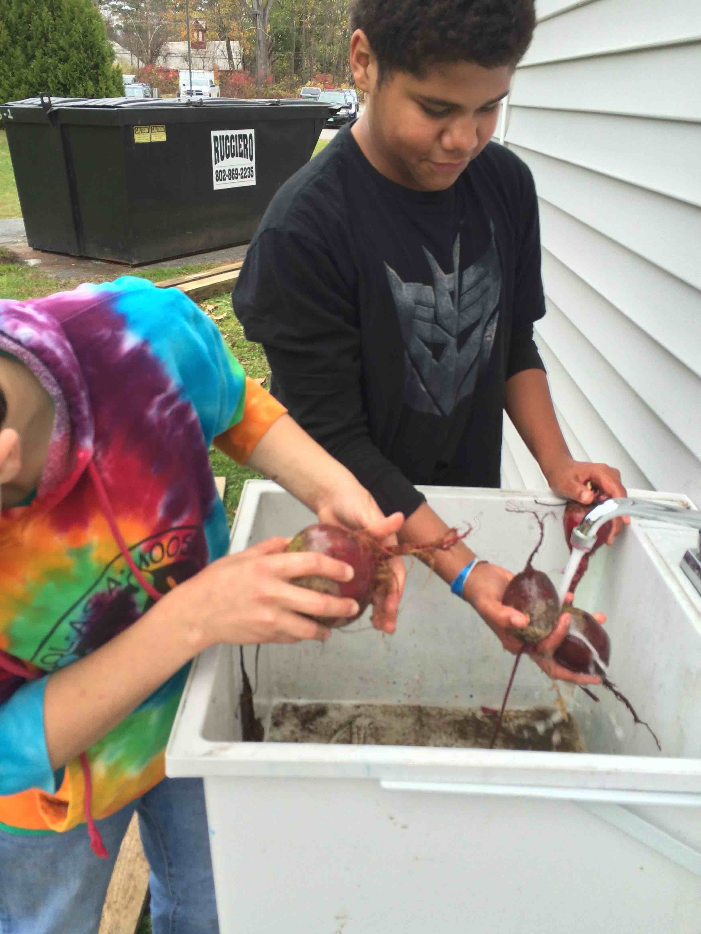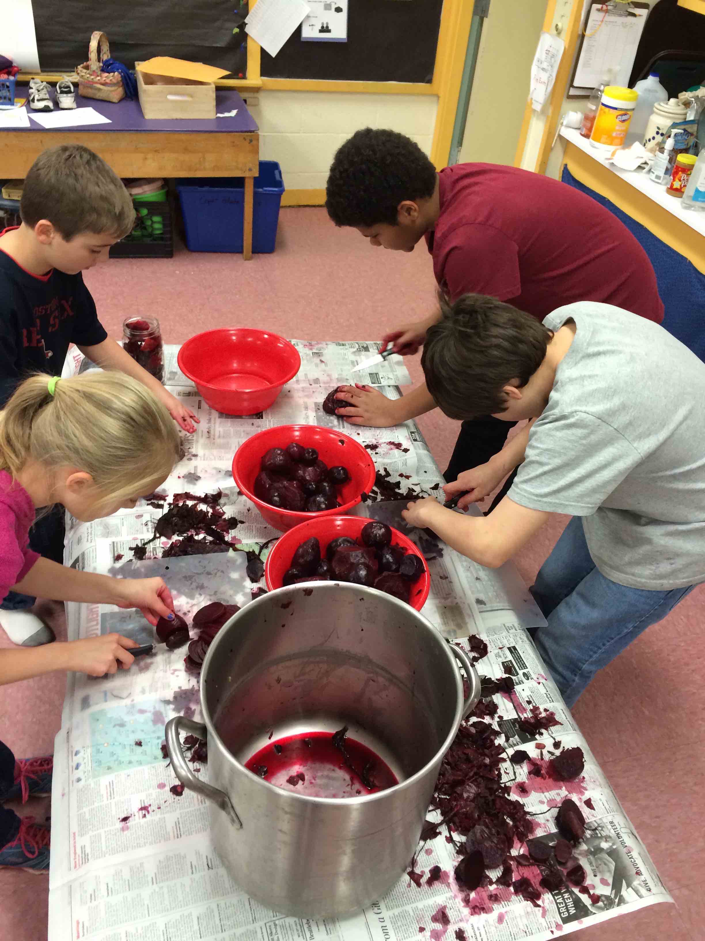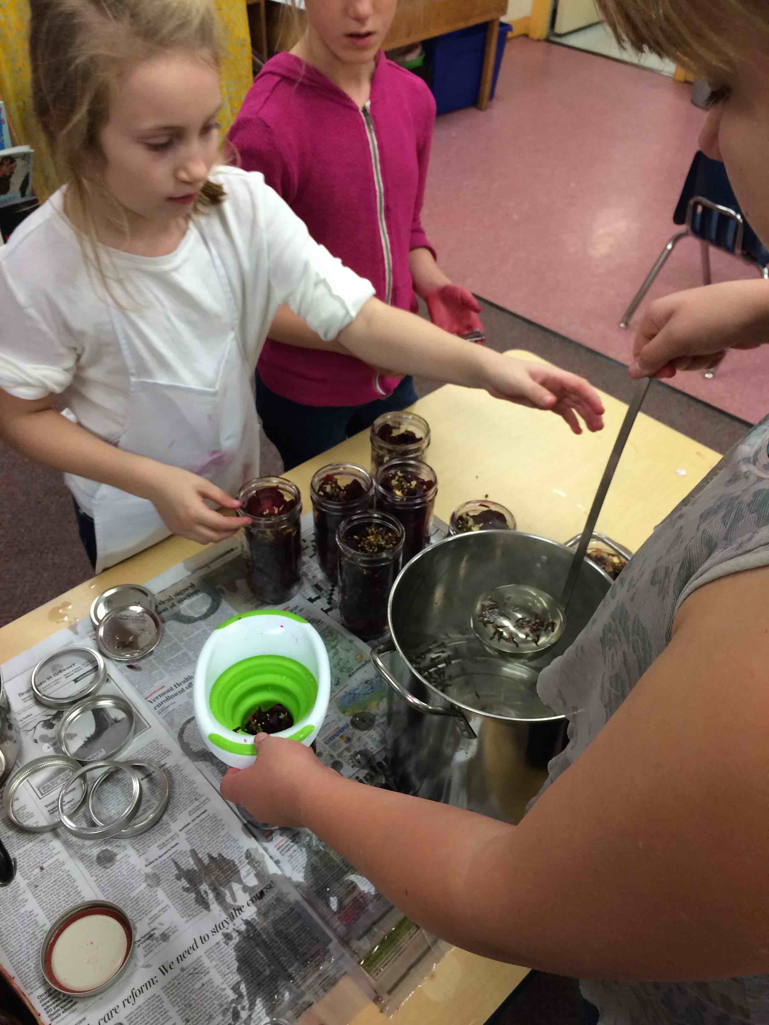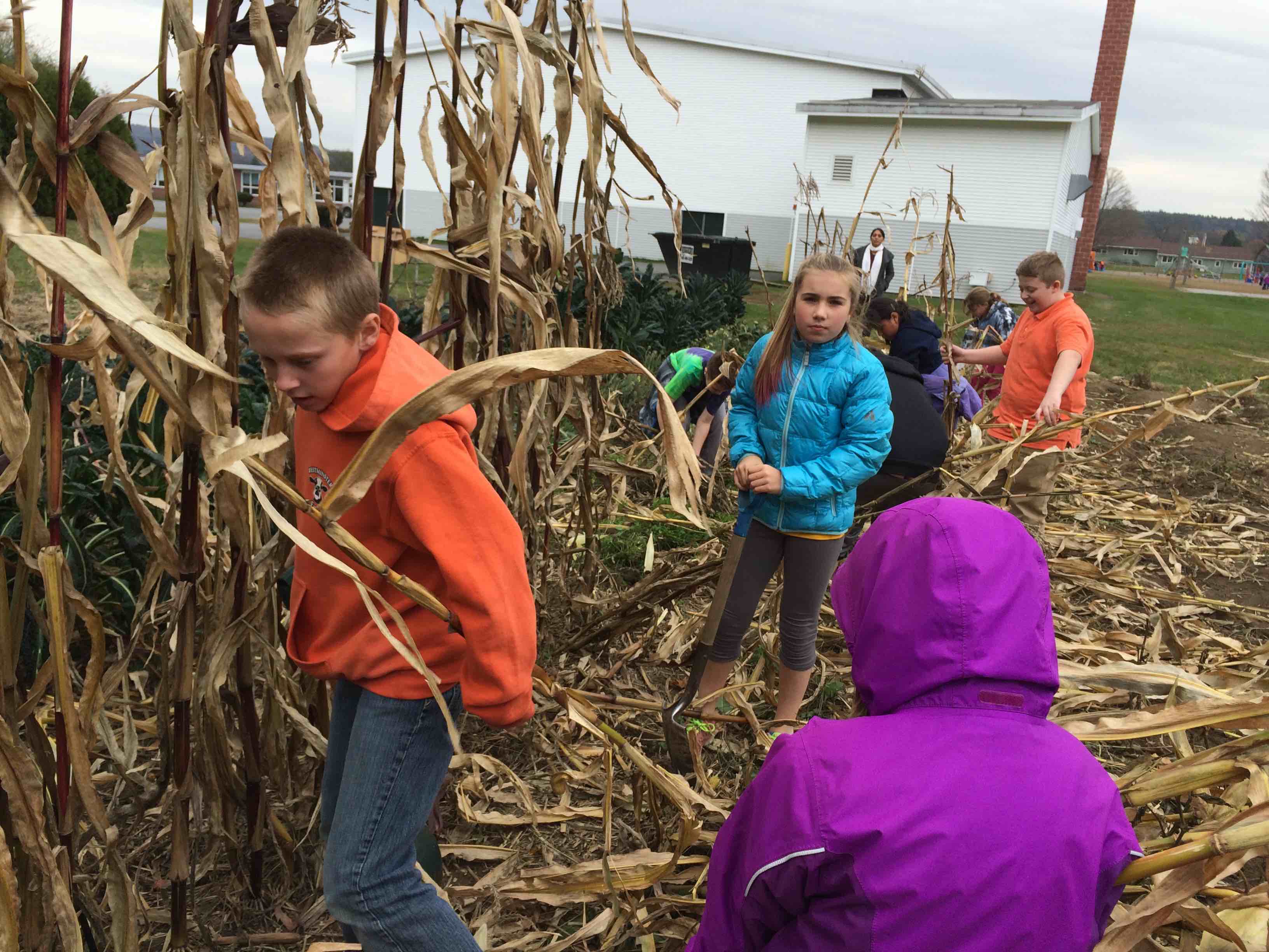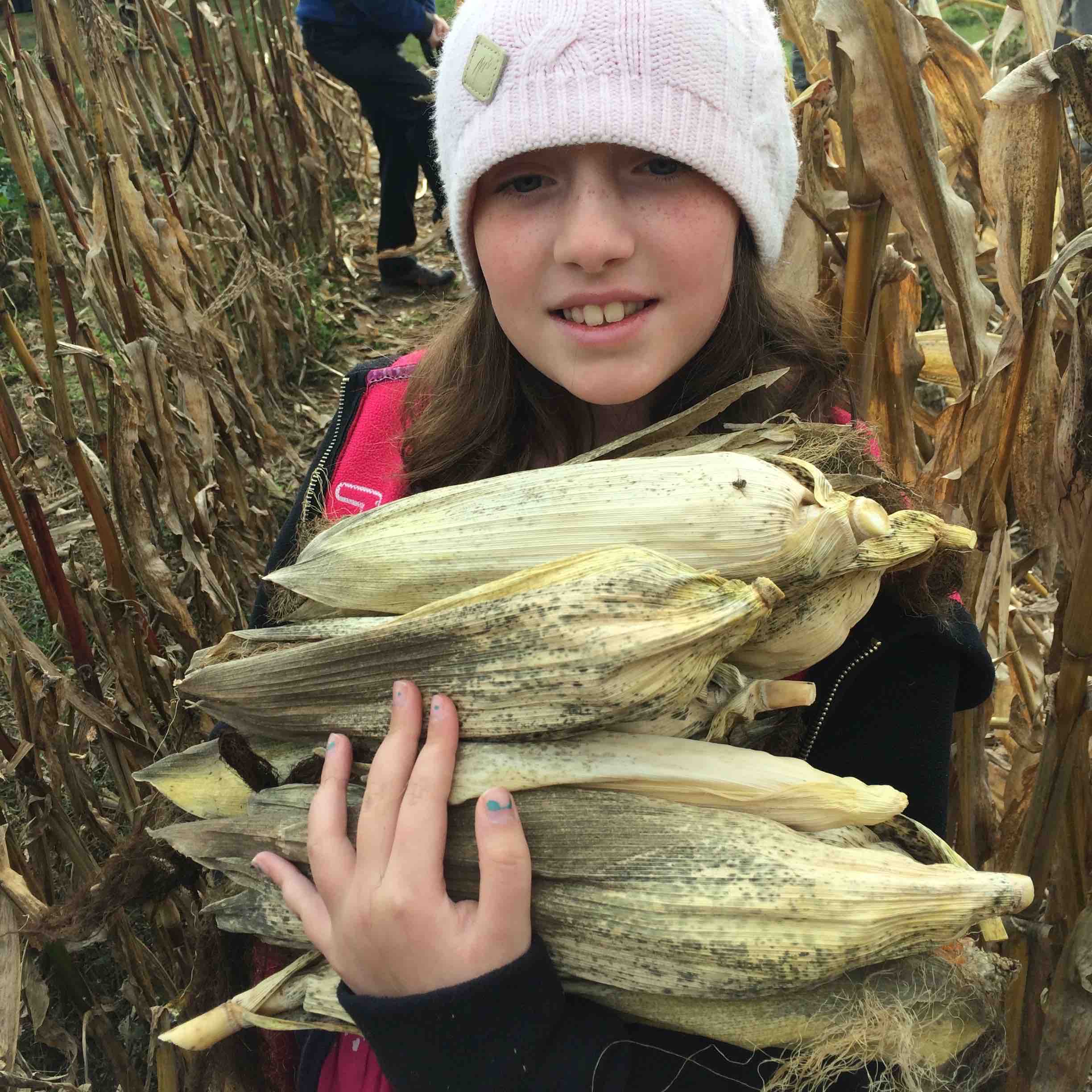 While they played with the name ‘Archemedean,’ fifth graders helped each other to hold the mill in place. Together they ground more than enough flint corn from our garden to make cornbread for their class. The recipe follows: